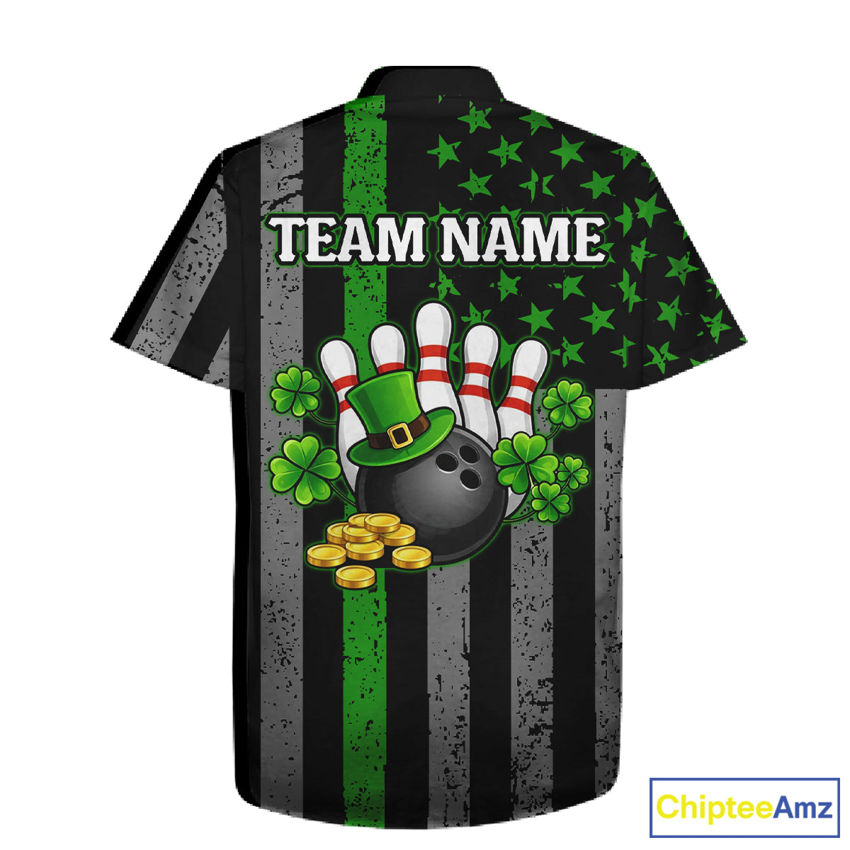 Custom Black Grunge US Flag Patriotic Bowling Button-up Shirt Green Shamrock St Patrick Team Jersey NQS11447