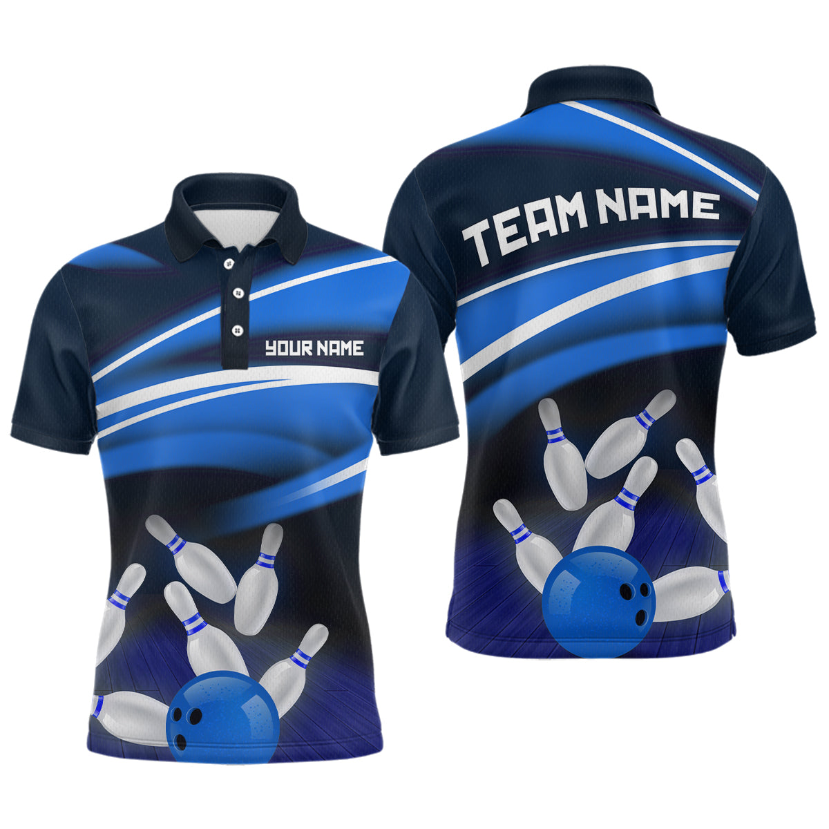 Custom Blue Bowling Jersey Bowling Team Shirts For Men Bowling League Polo & 1/4 Zip HNT163
