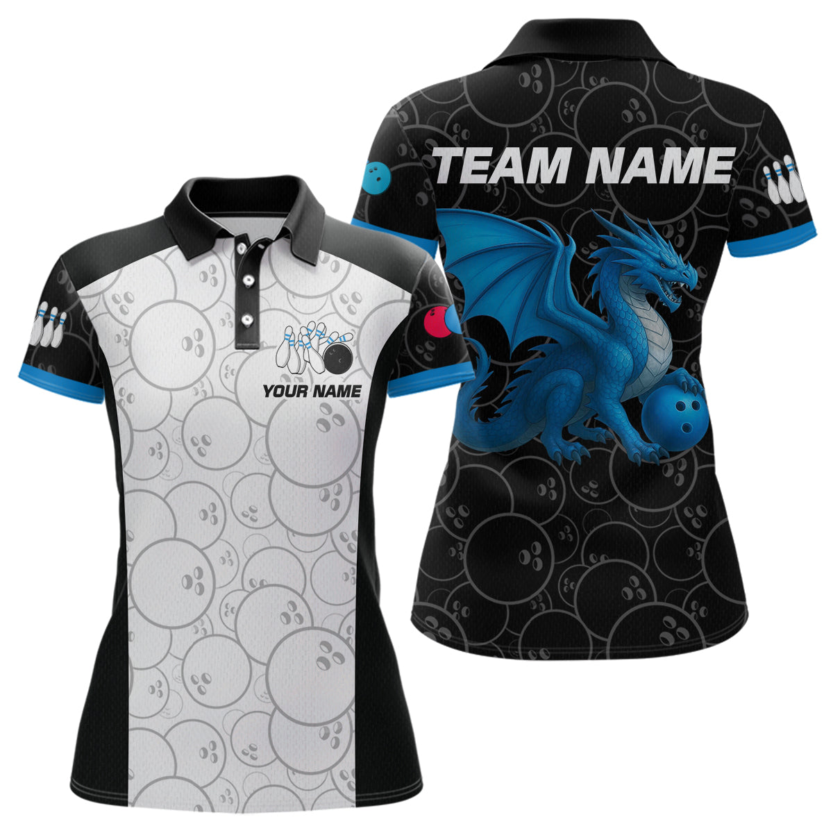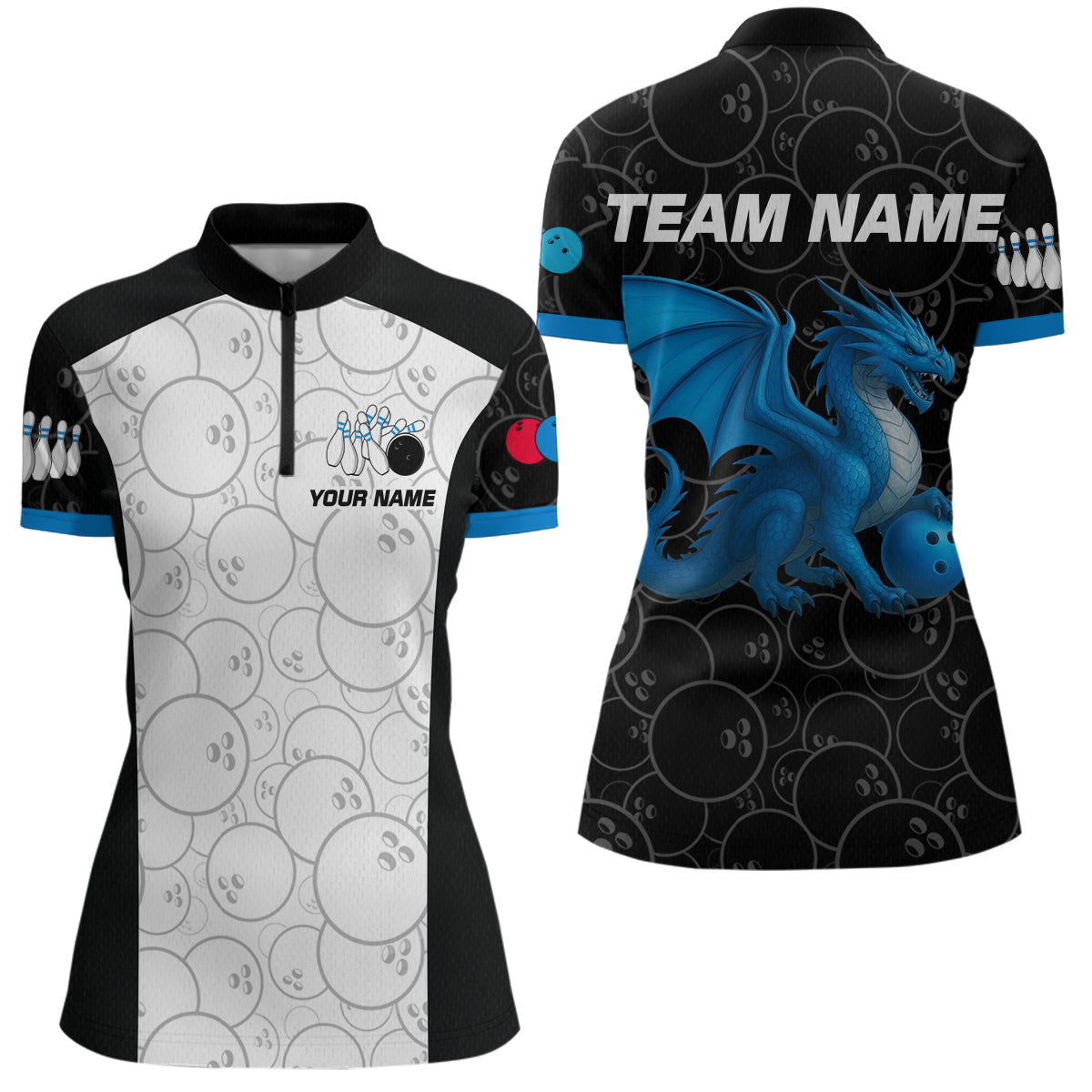 Custom Blue Dragon Bowling Shirts for Men Women Team Bowling Polo & Quarter Zip MBL86