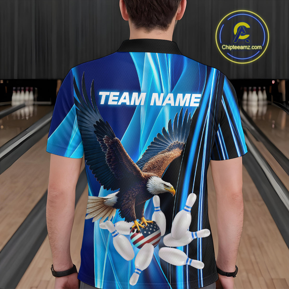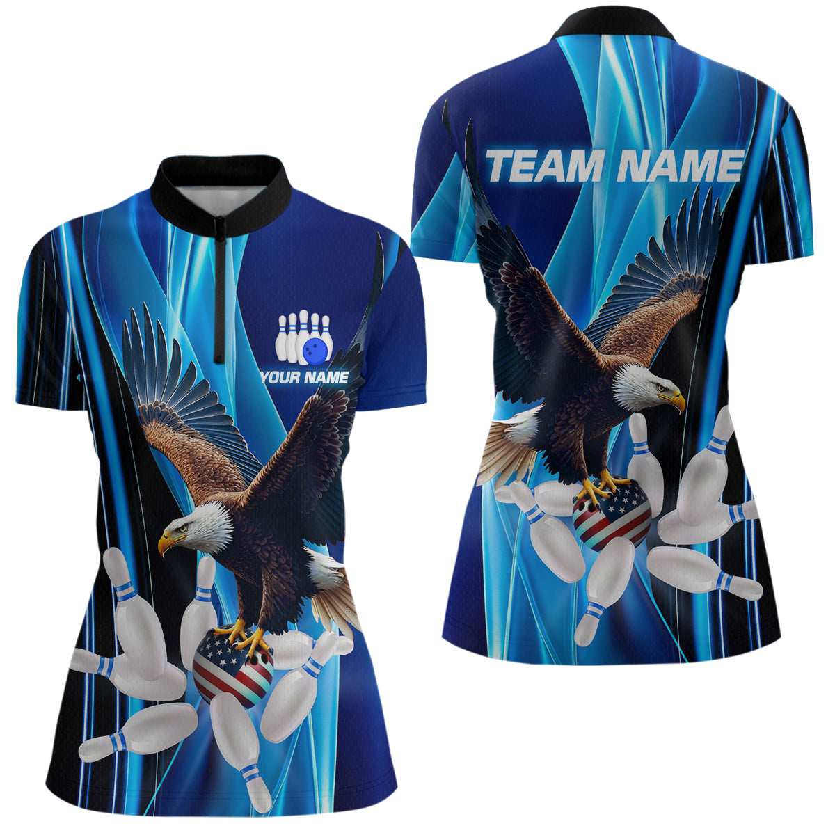 Custom Blue Eagle Bowling Shirt for Men Women Team Bowling Polo Shirts & 1/4 Zip MBL95
