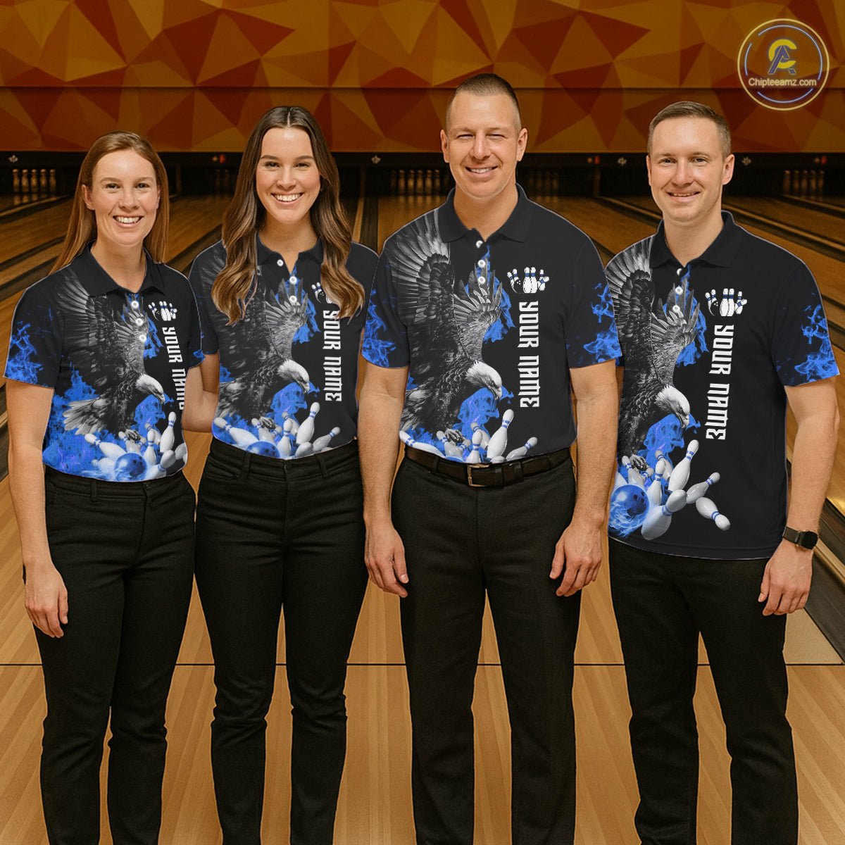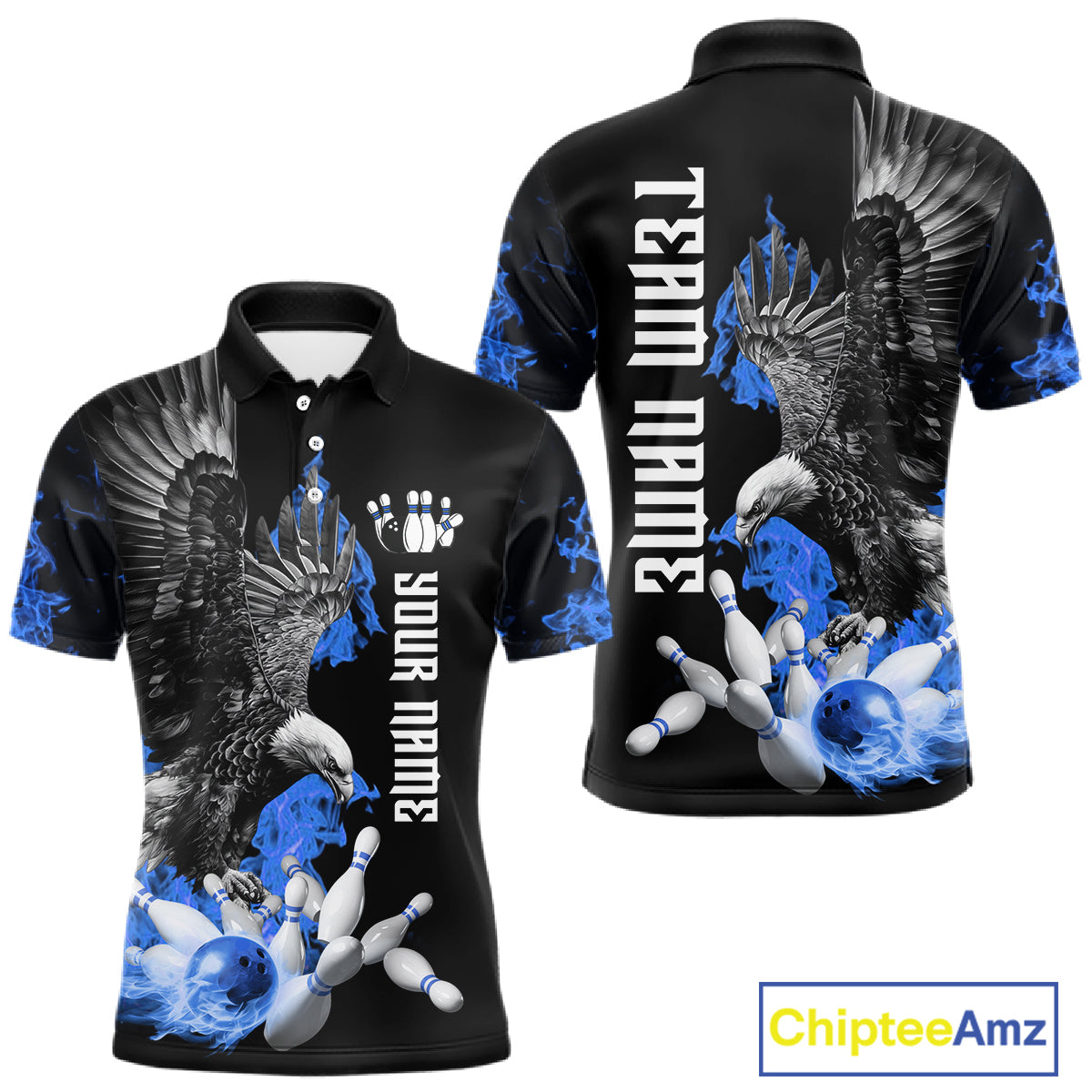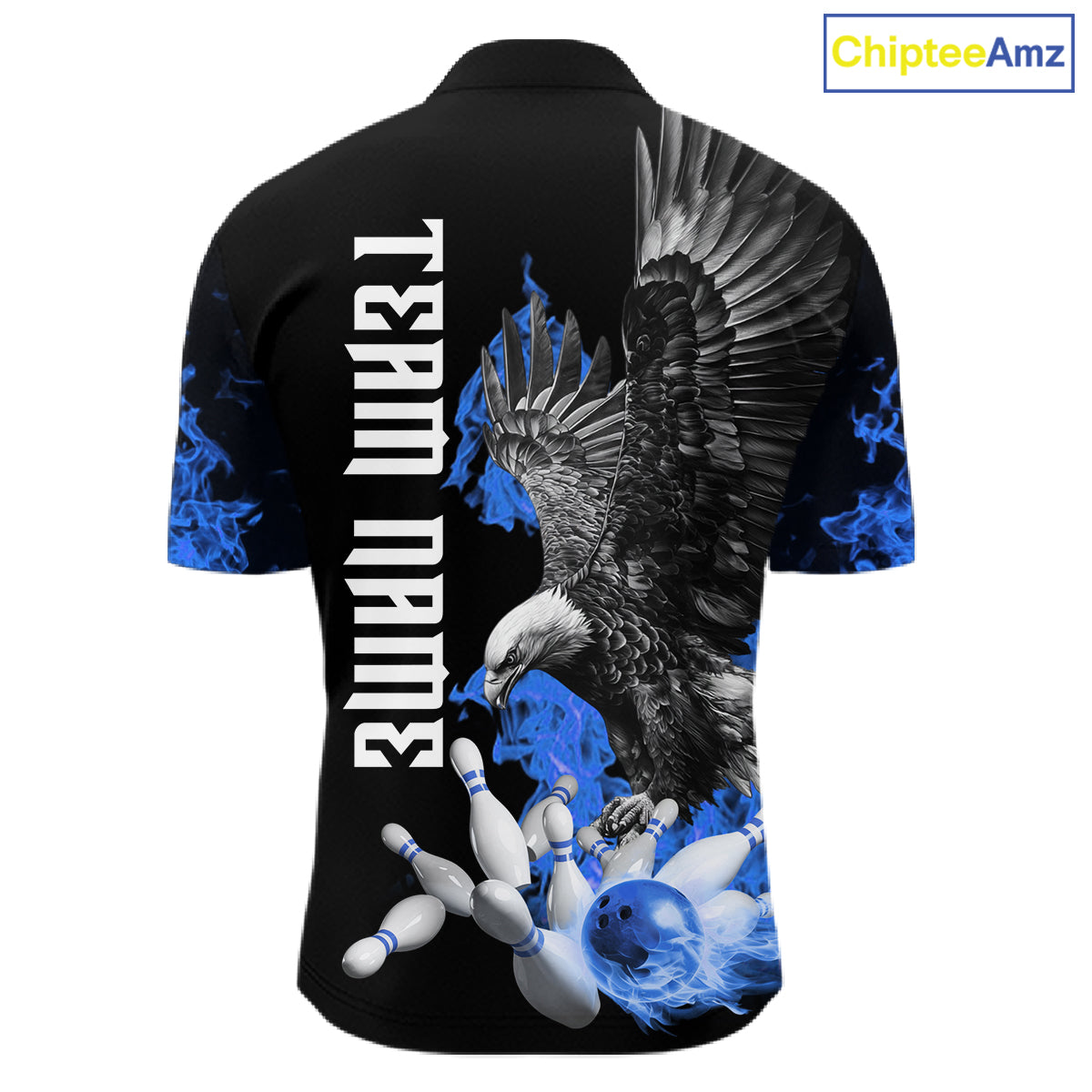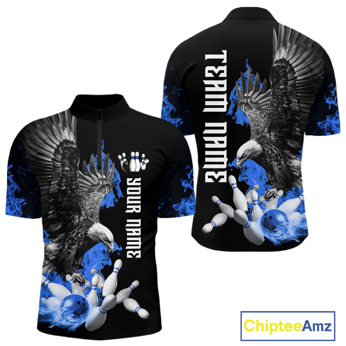 Custom Blue Flame Black Eagle Bowling Polo, Quarter Zip Shirt For Men, Team Bowling Clothes NQS11501