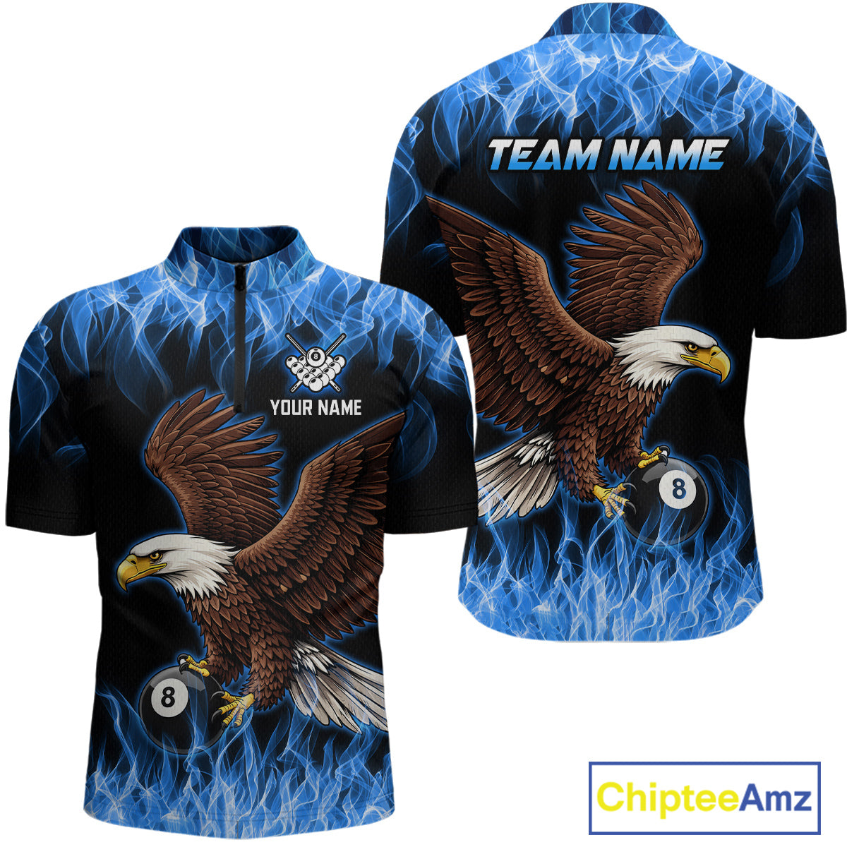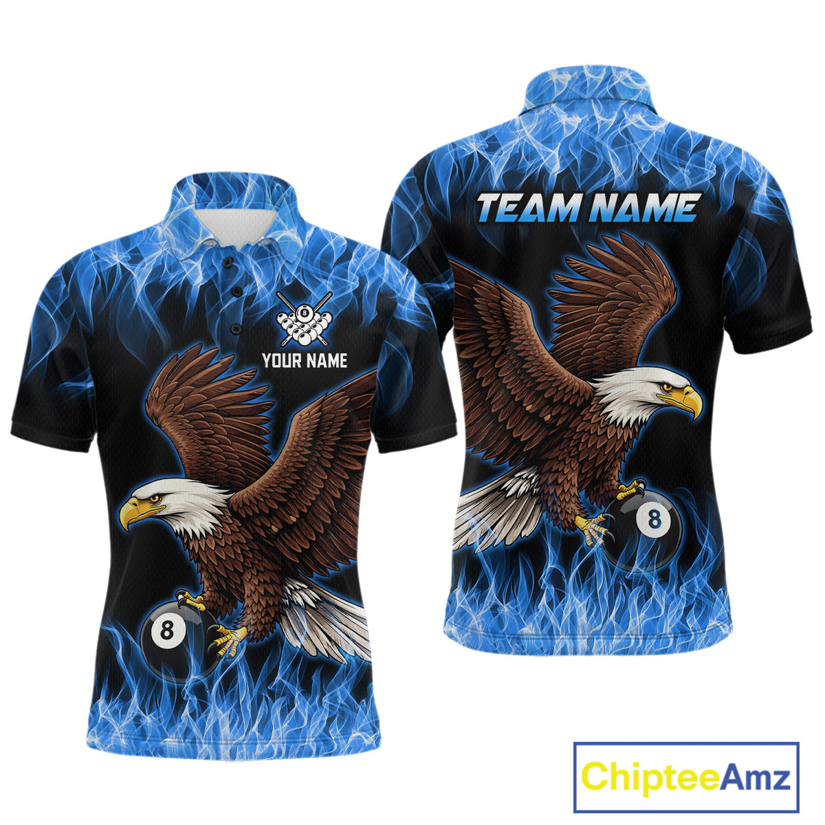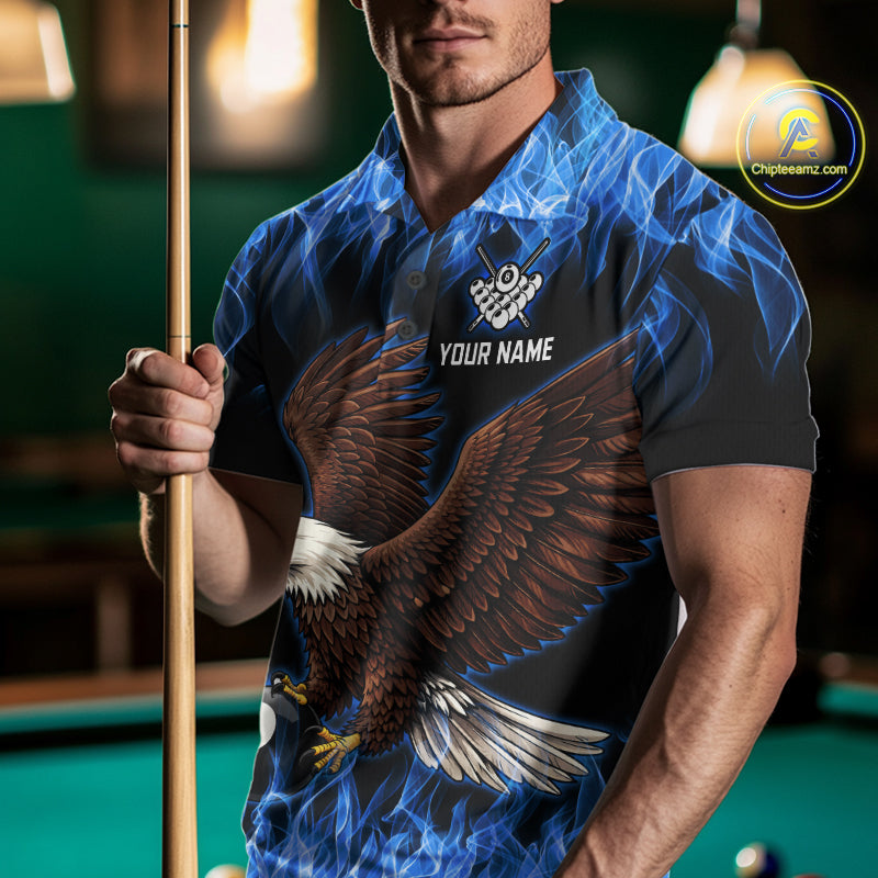 Custom Blue Flame Eagle 8 Ball Billiard Shirts for Men Billiard League Billiard Team Shirts NNT107