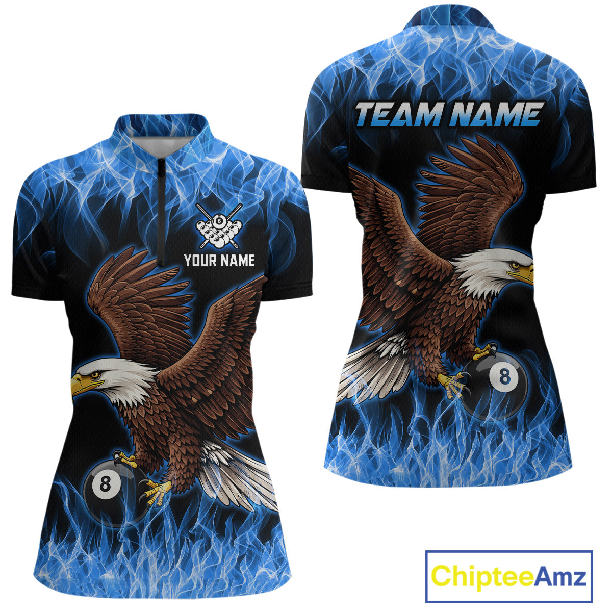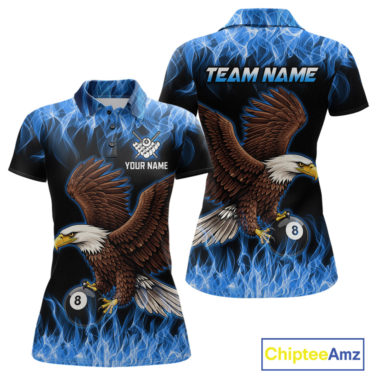 Custom Blue Flame Eagle 8 Ball Billiard Shirts for Women Billiard League Billiard Team Shirts NNT107