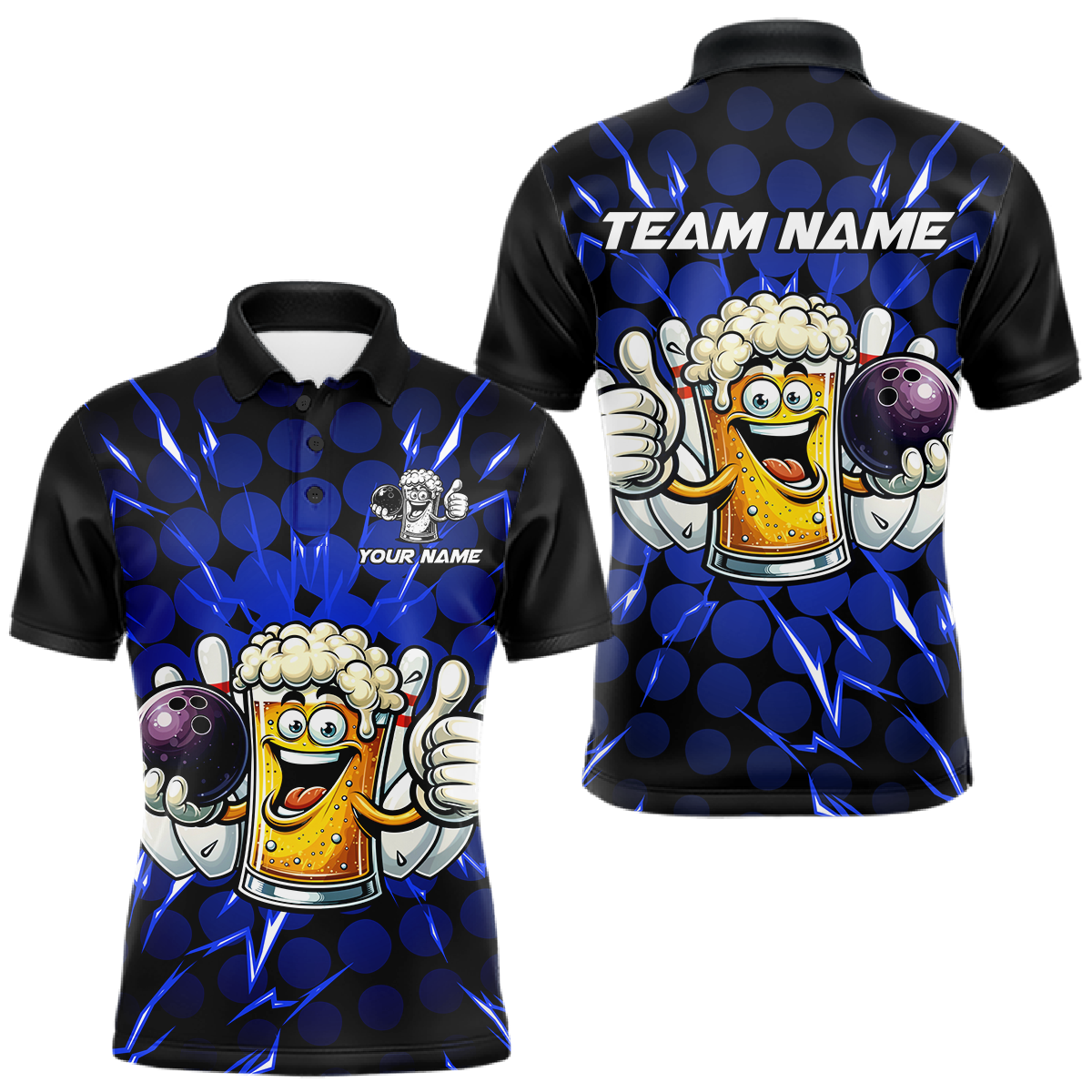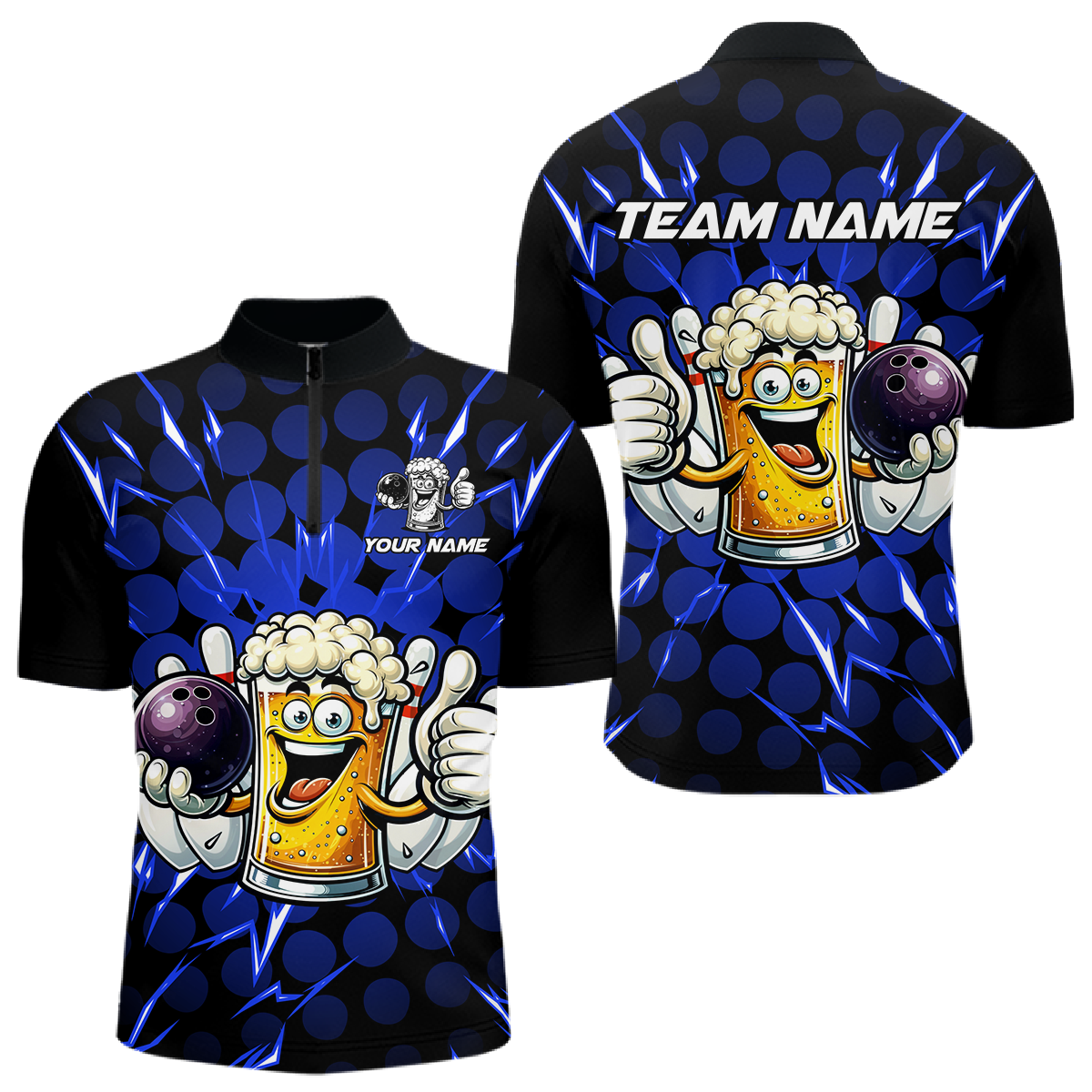 Custom Blue Funny Beer Bowling Jersey for Men Bowling Team Shirts Polo & 1/4 Zip HNT187