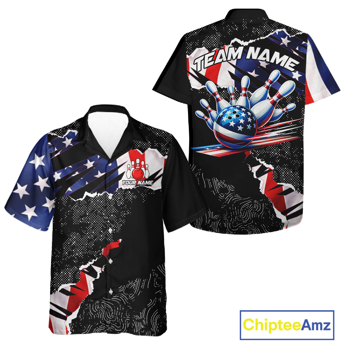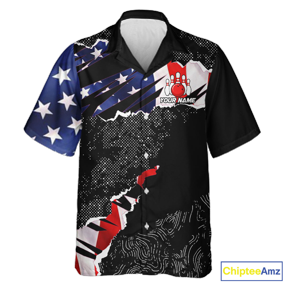 Custom button-up bowling shirts US Flag patriotic team bowling league shirts NQS11409