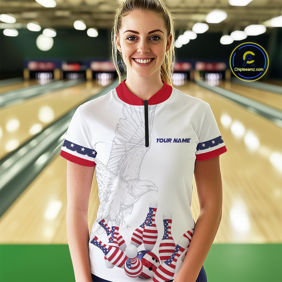 Custom Eagle US Flag Bowling Women Bowling Shirt Polo & Quarter-Zip Bowling Team Jerseys HNT76