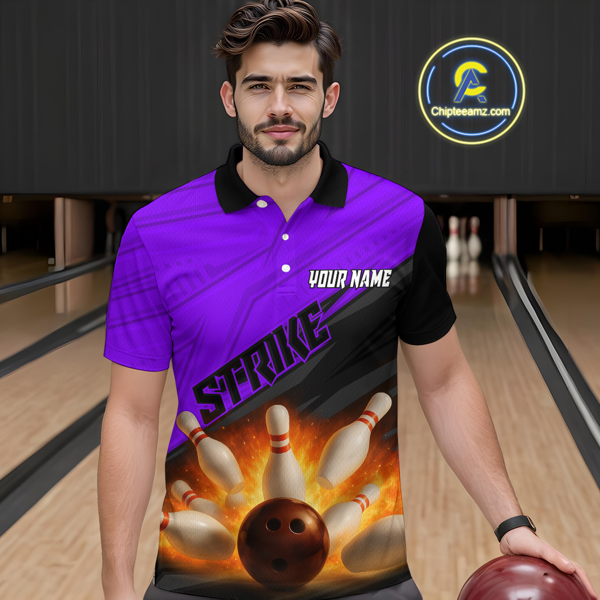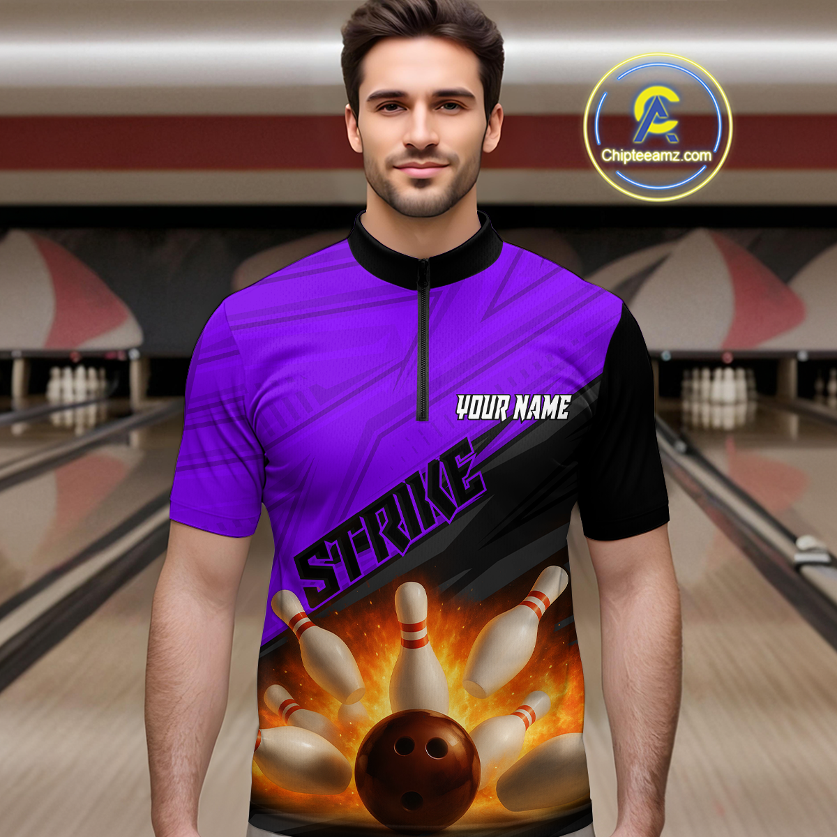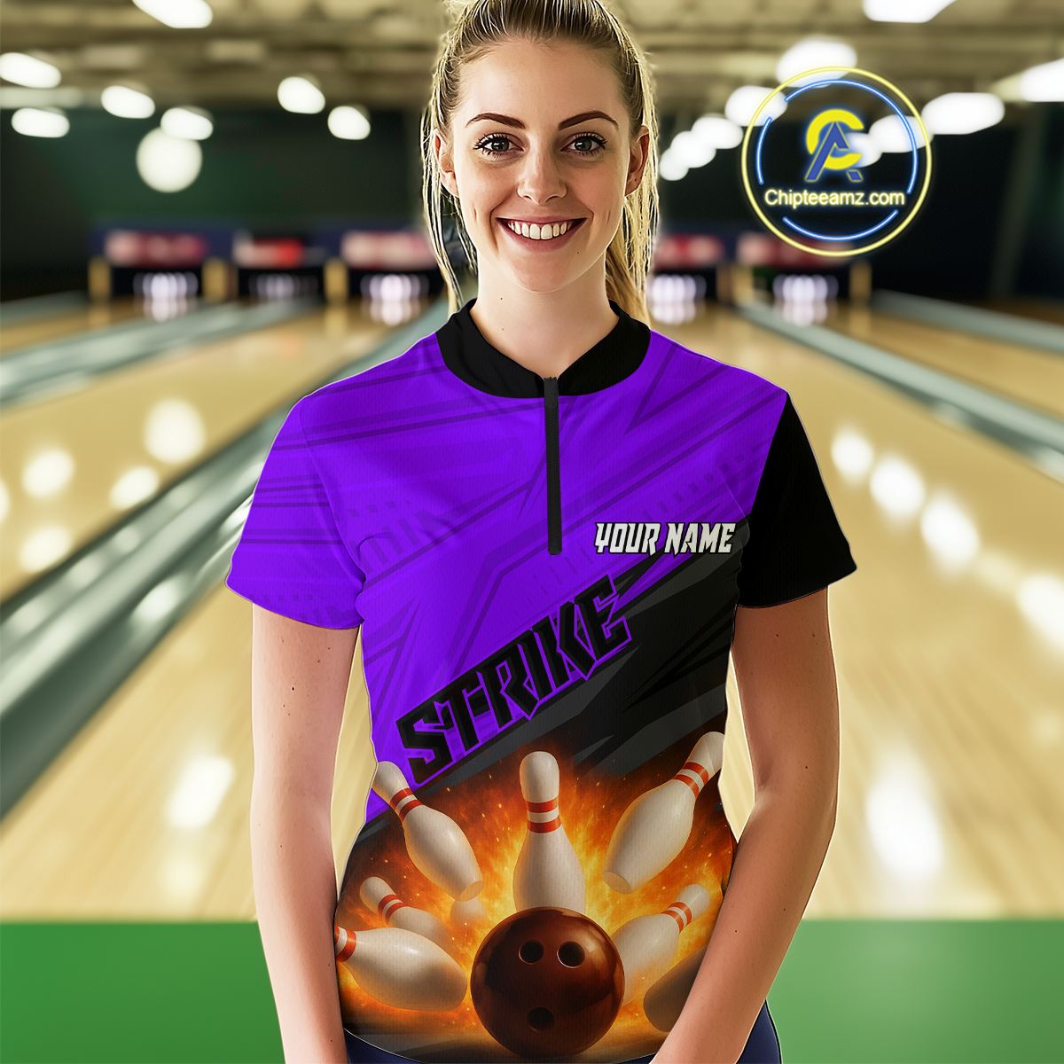 Custom Flaming Purple Bowling Shirts for Women Men Team Bowling Polo & Quarter Zip MBL99