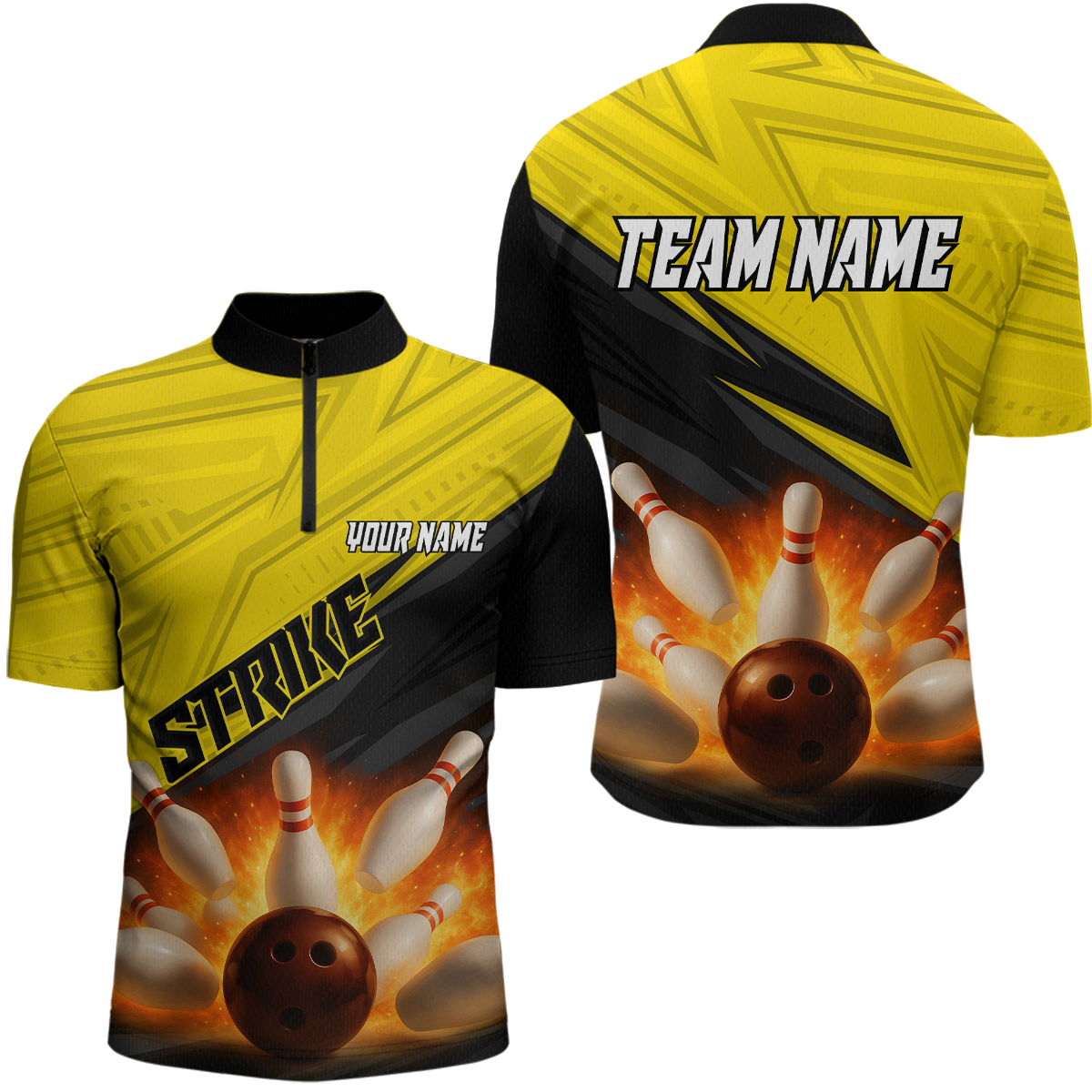 Custom Flaming Yellow Bowling Shirts for Women Men Team Bowling Polo & Quarter Zip MBL99