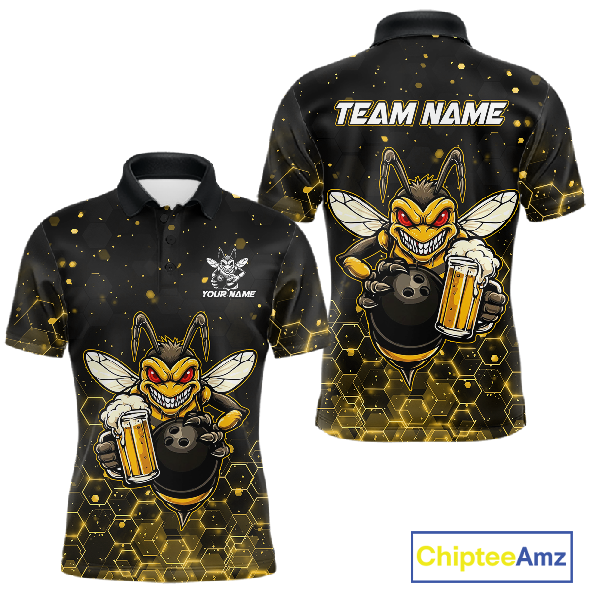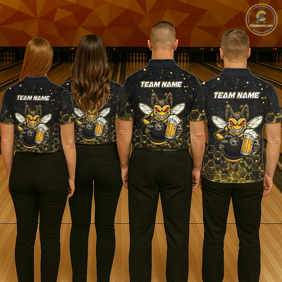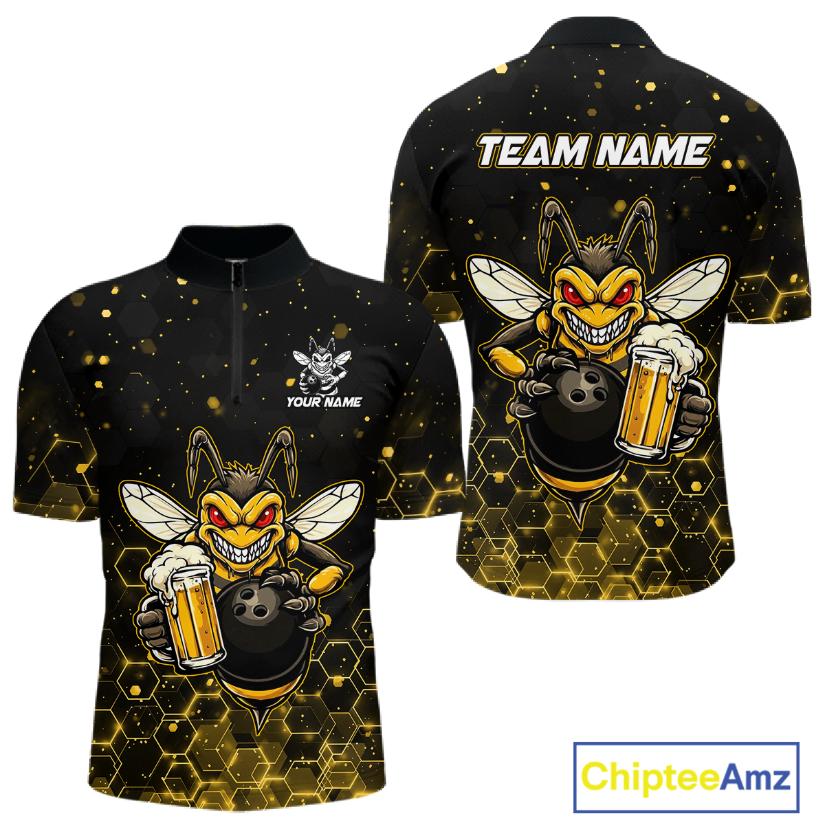 Custom Funny Beer Bee Bowling Jersey for Men Bowling Team Shirts Polo & 1/4 Zip HNT191