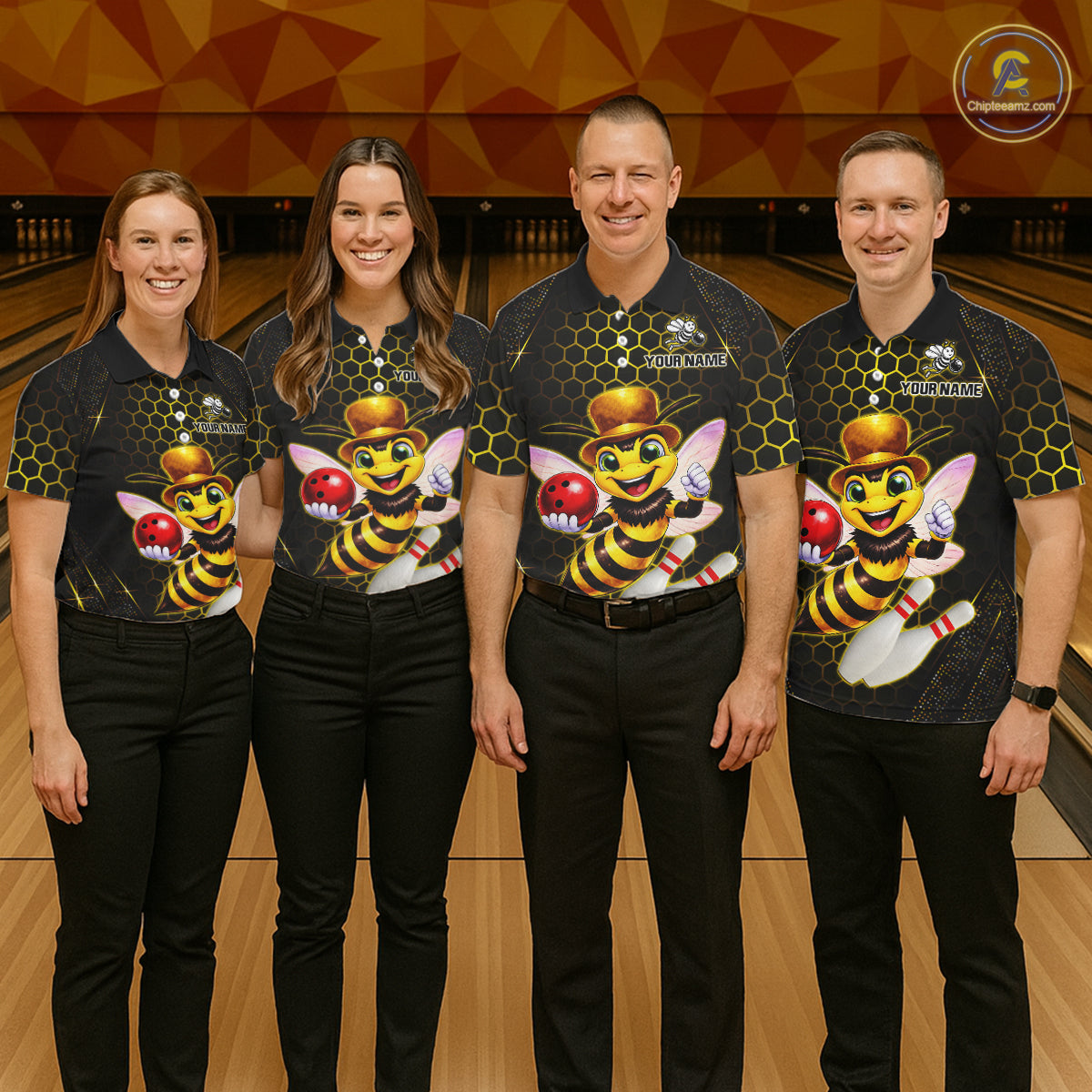 Custom Funny Bee Bowling Jersey for Men Bowling Team Shirts Bowling League Polo & 1/4 Zip HNT188