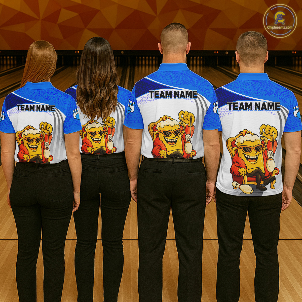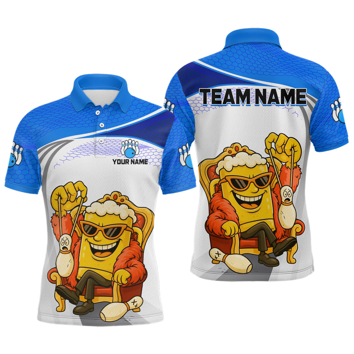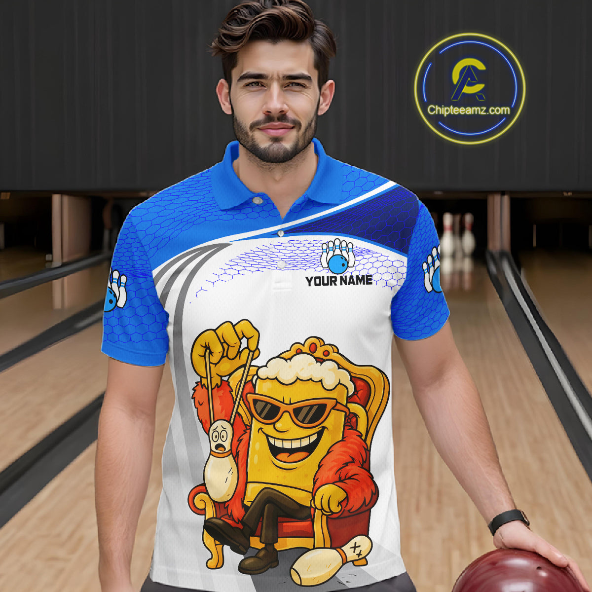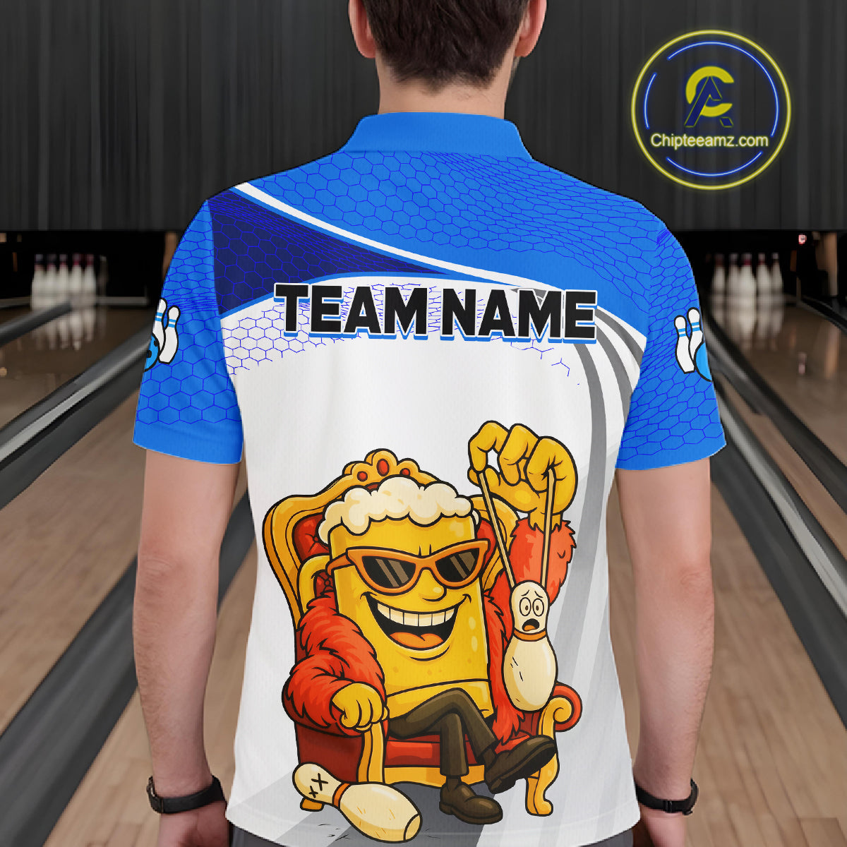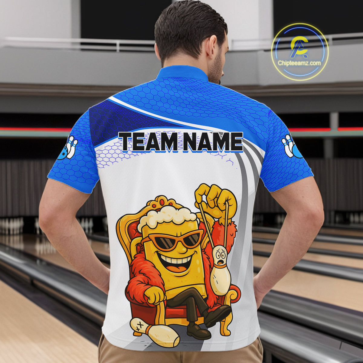 Custom Funny Blue Beer Polo Bowling Team Shirt for Men Quarter-Zip Bowling Jersey Outfit QZT820