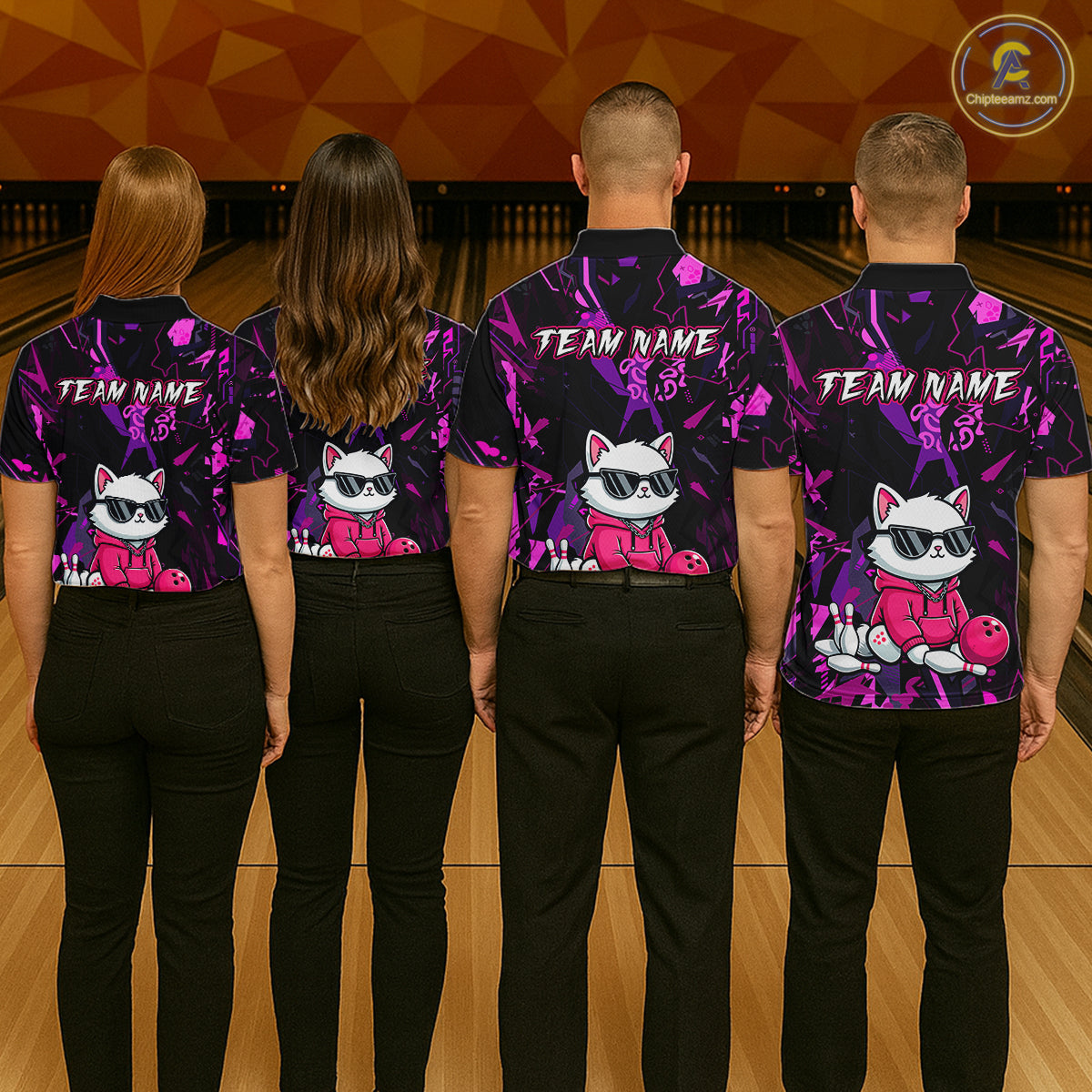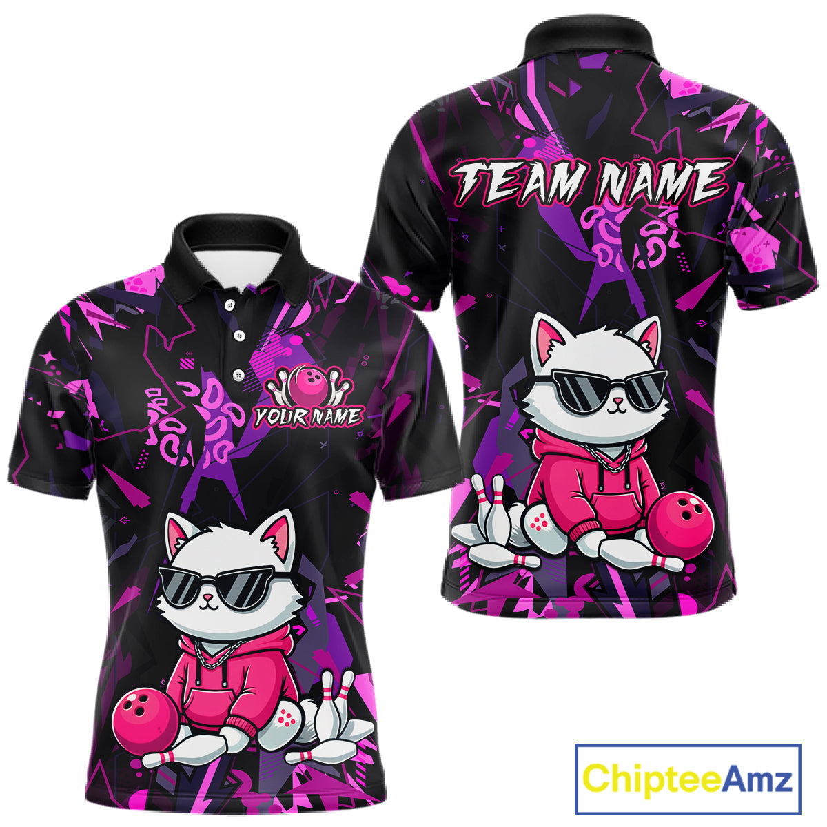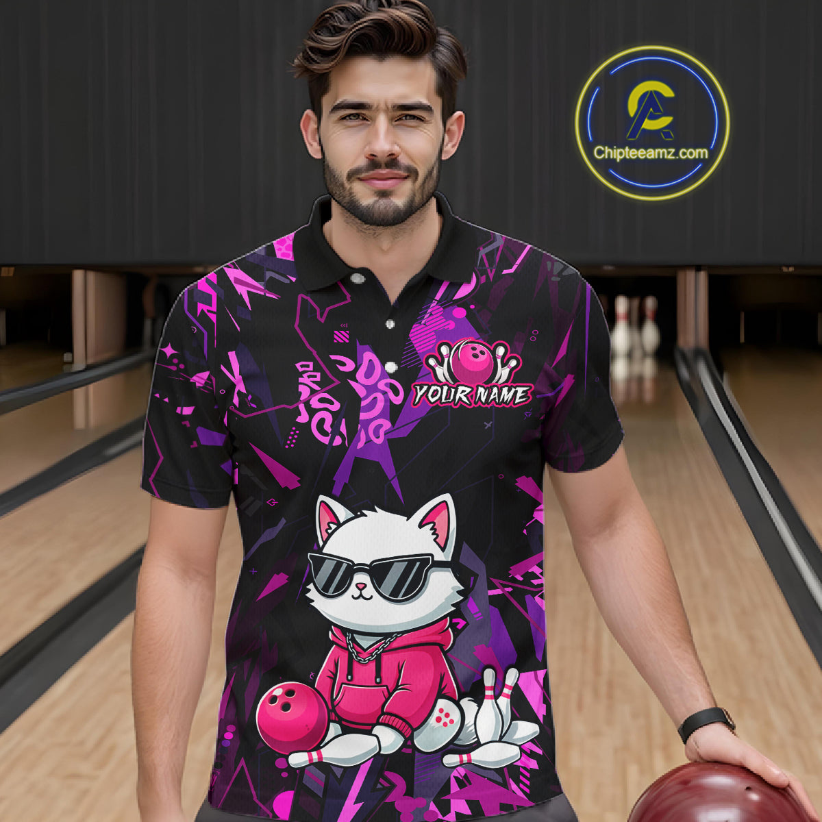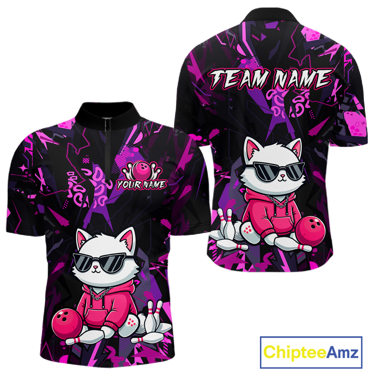 Custom Funny Cat Bowling Bowling Jersey for Men Bowling Team Shirts Polo & 1/4 Zip HNT194