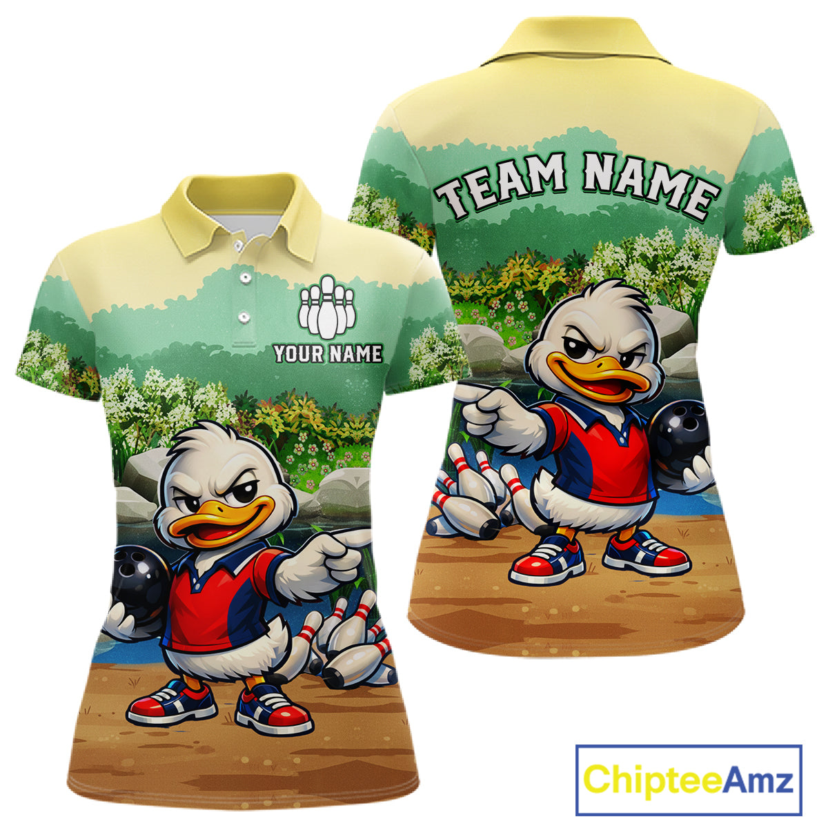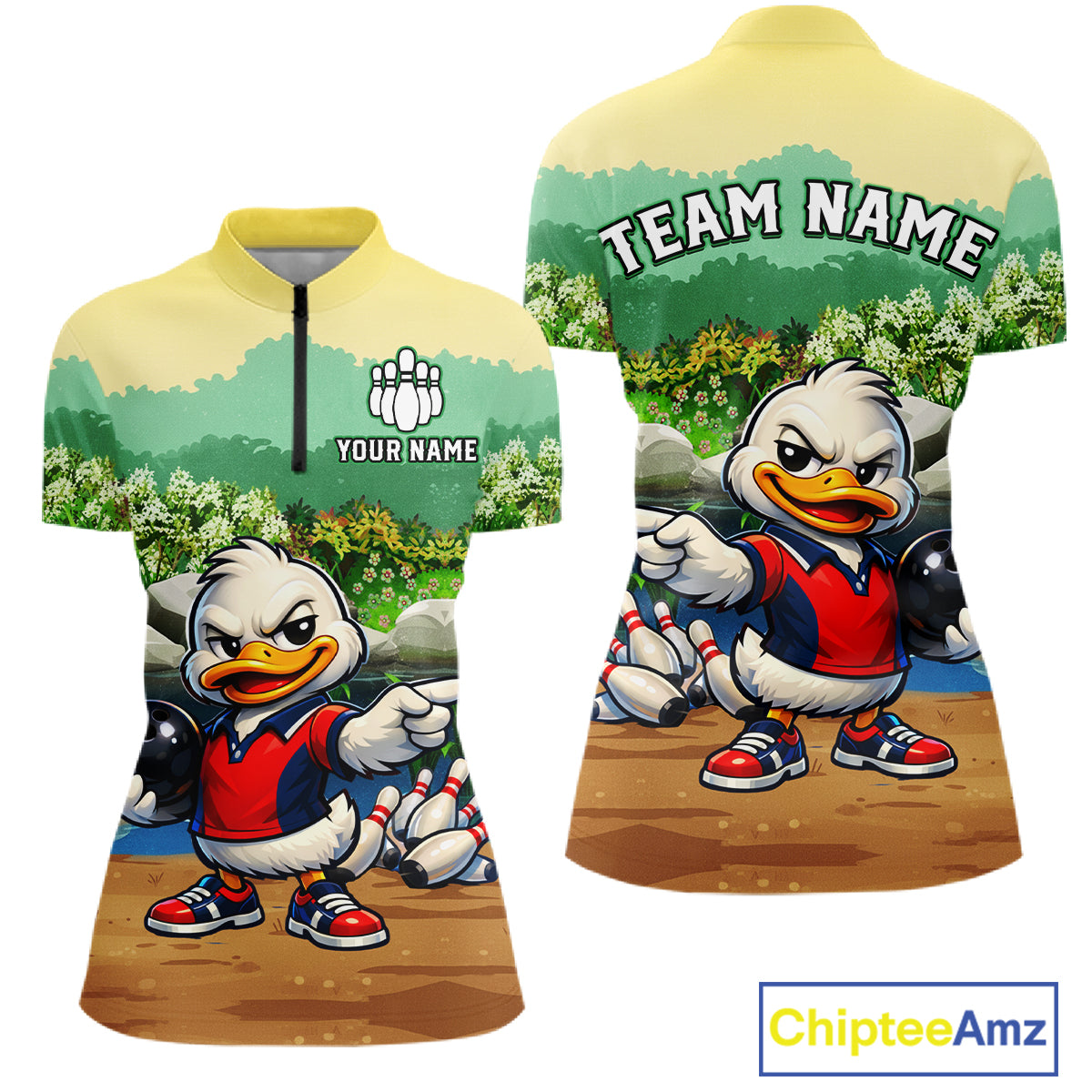 Custom Funny Duck Bowling Shirt Polo & Quarter-Zip Bowling Team Jersey for Women QZT859