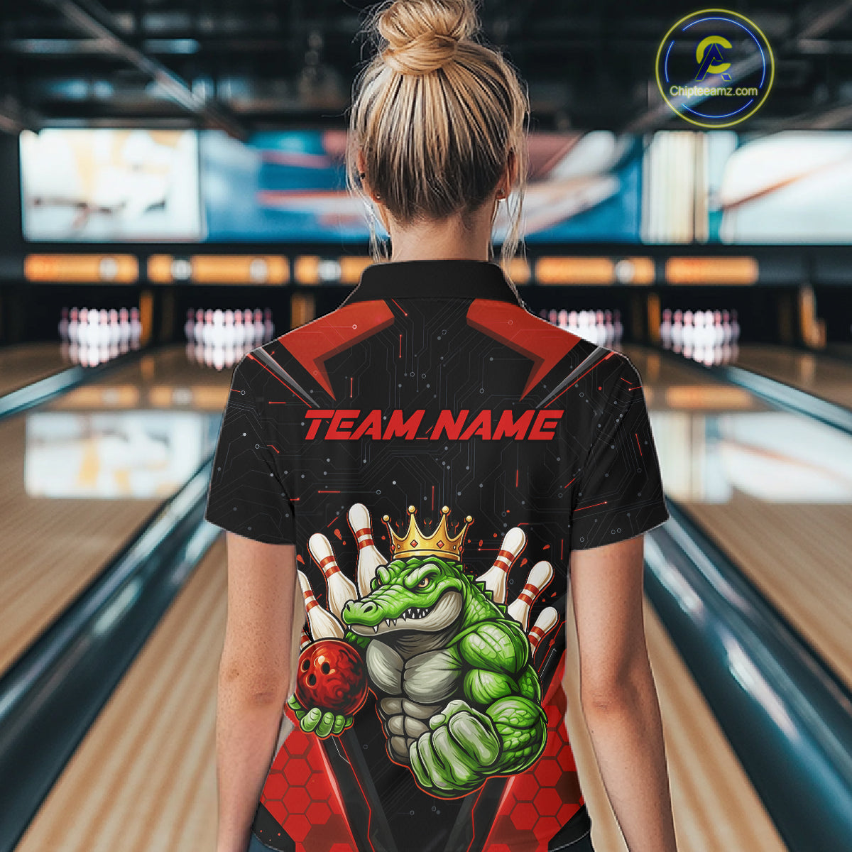 Custom Funny Red Crocodile Bowling Shirt Alligator Bowling Jersey for Women Polo & 1/4 Zip QZT823