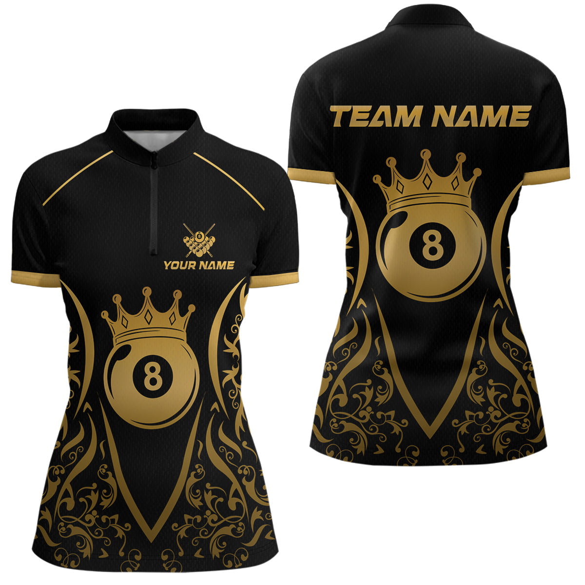 Custom Gold 8 Ball Crown Billiard Shirts for Women and Team Polo & 1/4 Zip Shirts NNT49
