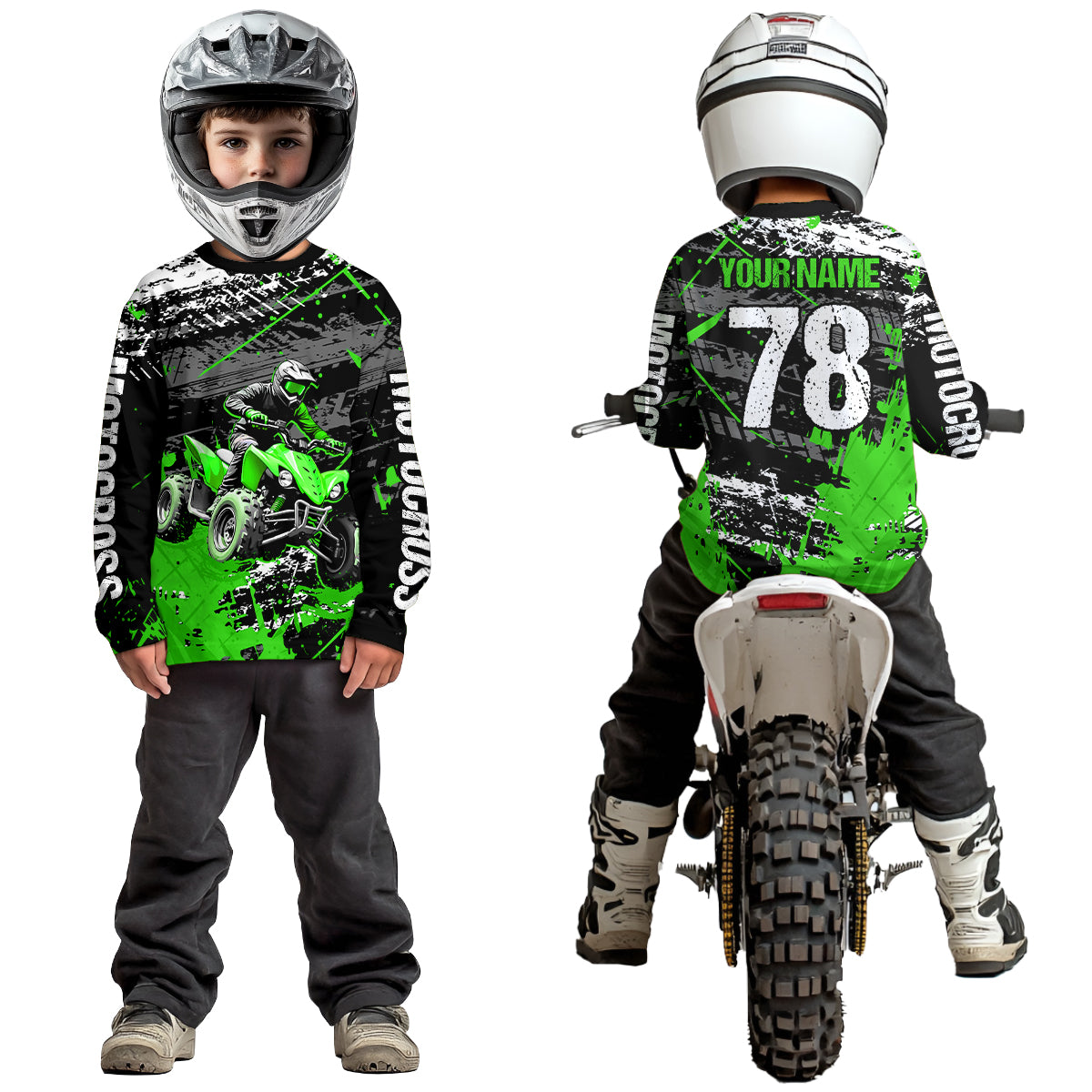 Custom Green Off-Road Quad Bike Shirt Youth ATV Motocross Shirts Kid Men Women UPF30+ DNT78
