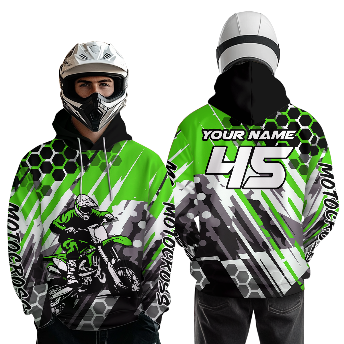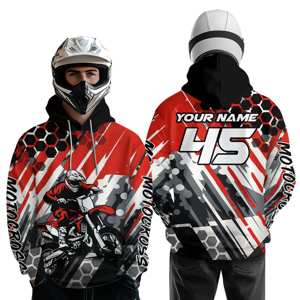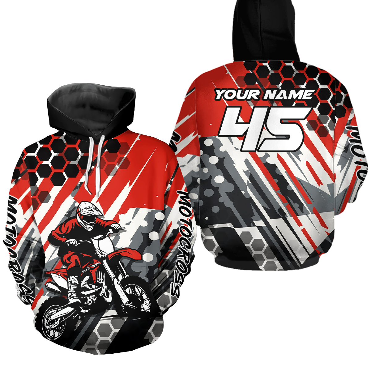 - PERSONALIZED MOTOCROSS RACING HOODIE: This super cool shirt is exactly what all bikers are looking for. Add your name/number to make it a unique one that bears your own imprints.