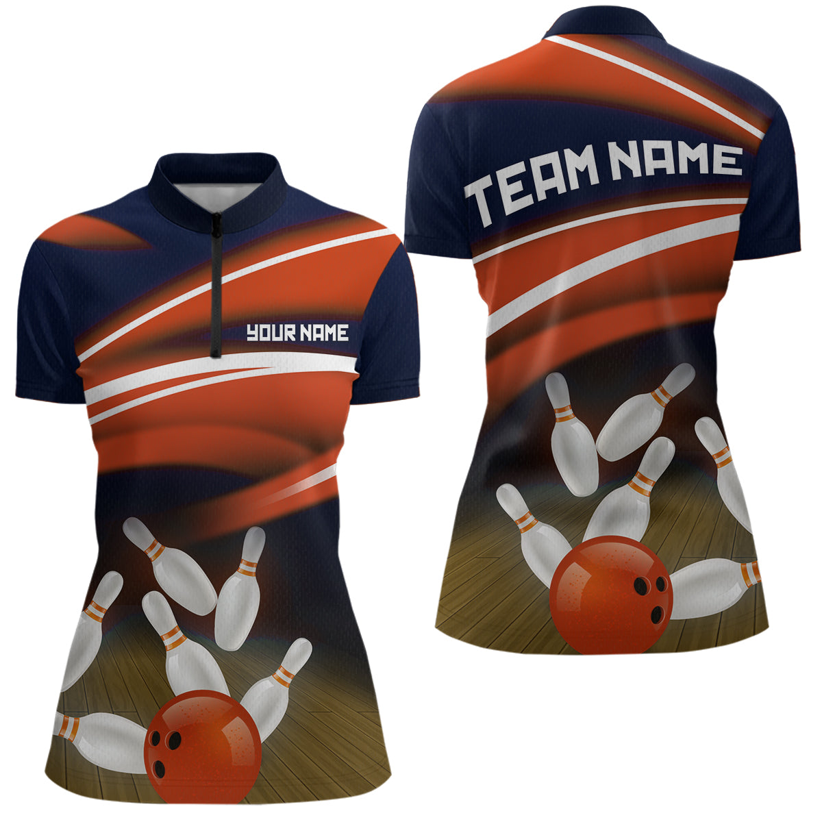 Custom Orange Bowling Jersey Bowling Team Shirts For Women Bowling League Polo & 1/4 Zip HNT163