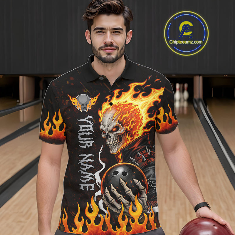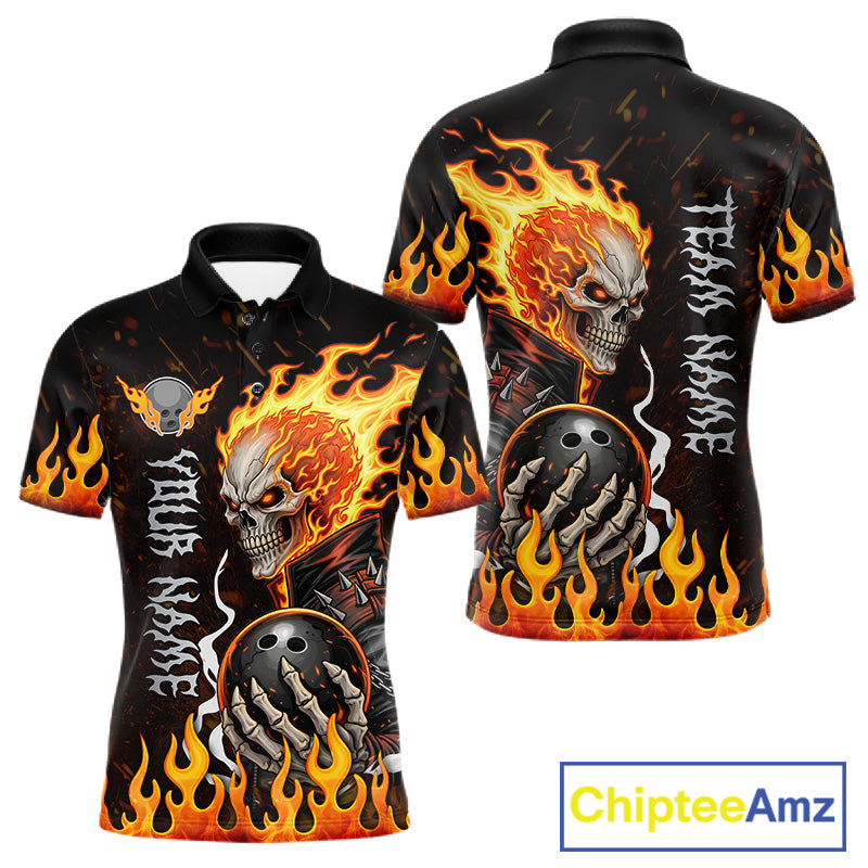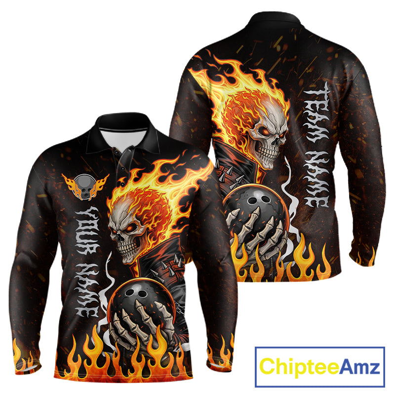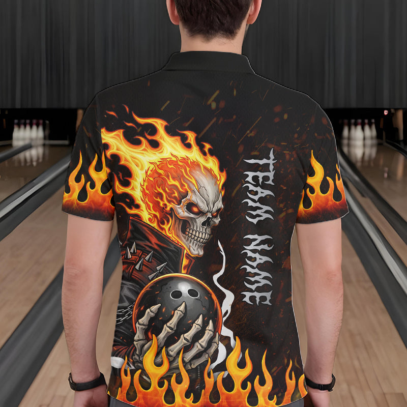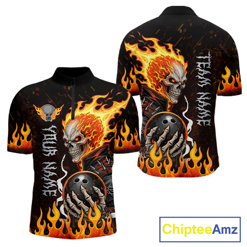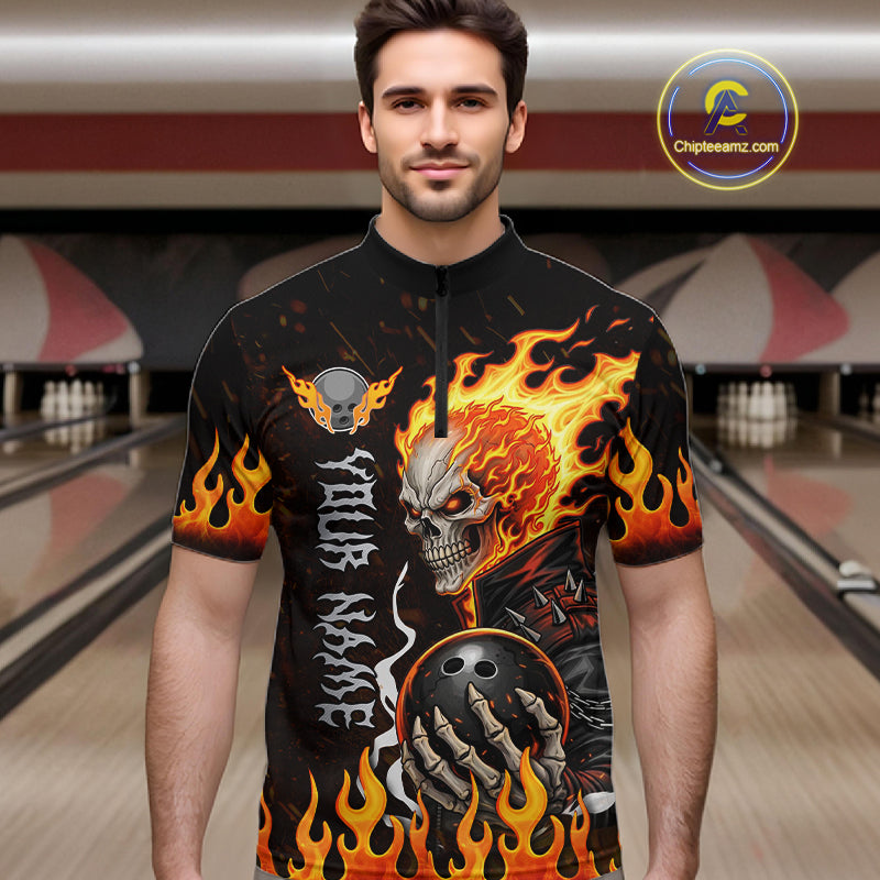Custom Orange Flame Skull Bowling shirts for men, bowling team league jerseys Polo, 1/4 zip shirts NQS11496