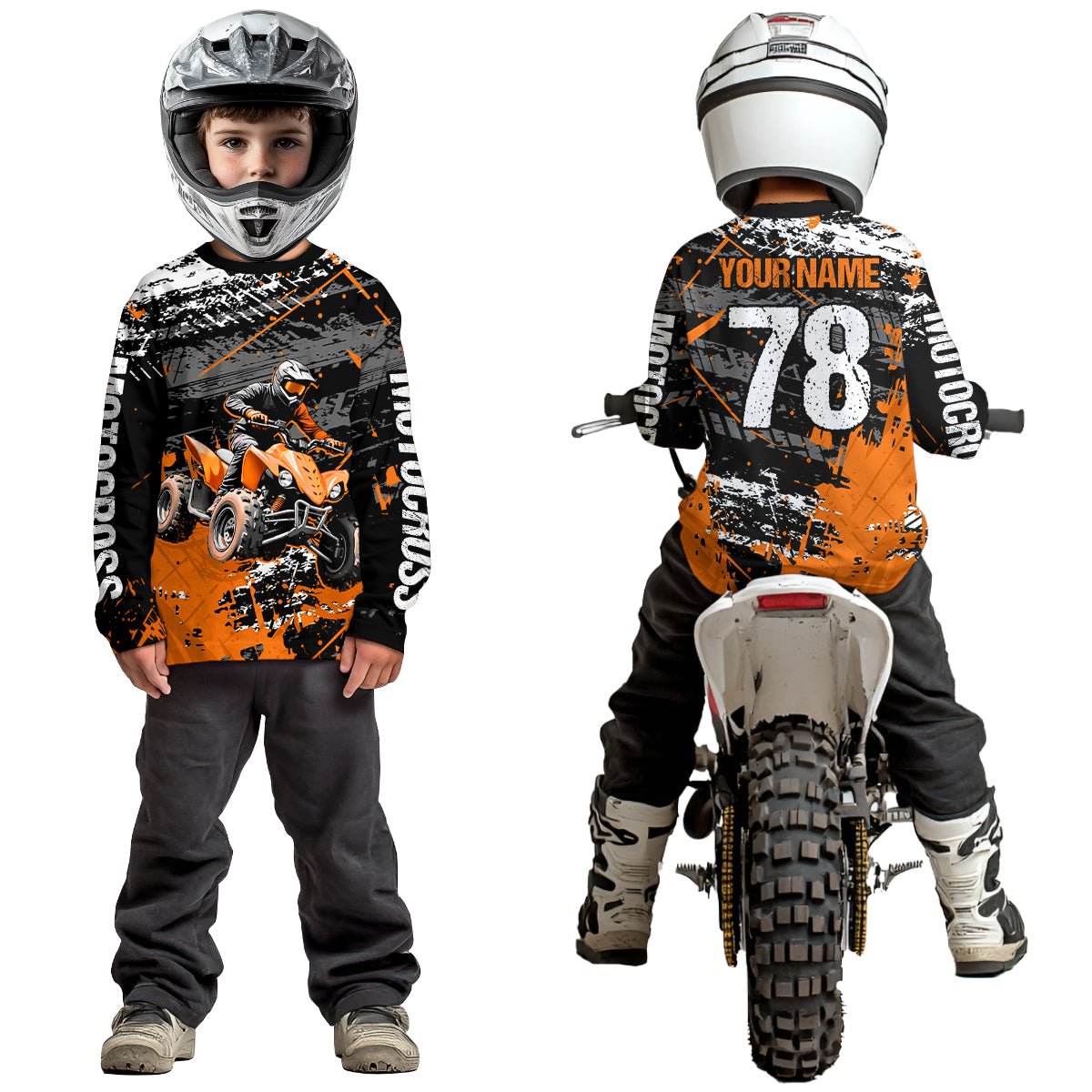 Custom Orange Off-Road Quad Bike Shirt Youth ATV Motocross Shirts Kid Men Women UPF30+ DNT78