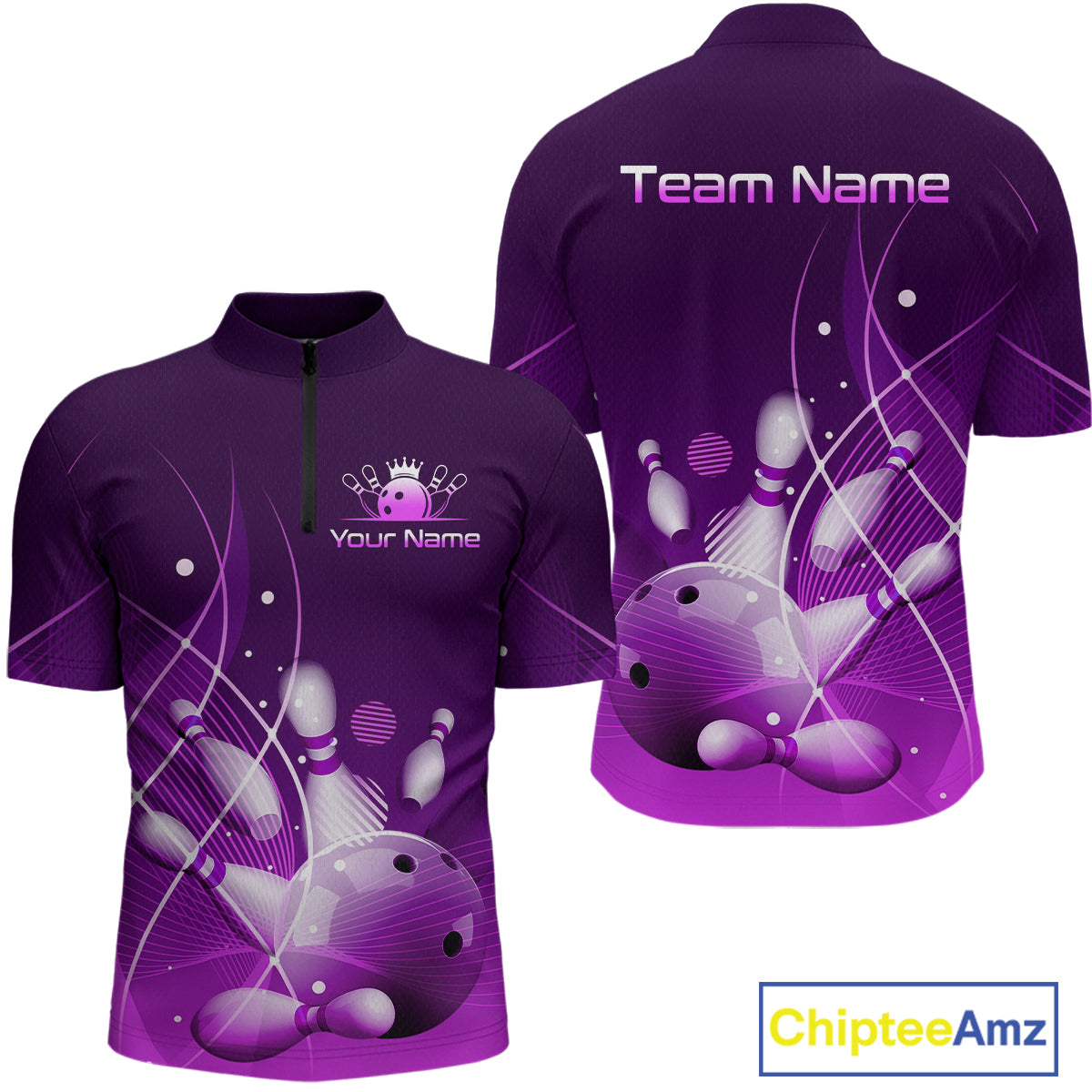 Custom Purple Bowling Jersey for Men Bowling Uniform Bowling Team Shirts Polo & 1/4 Zip HNT168
