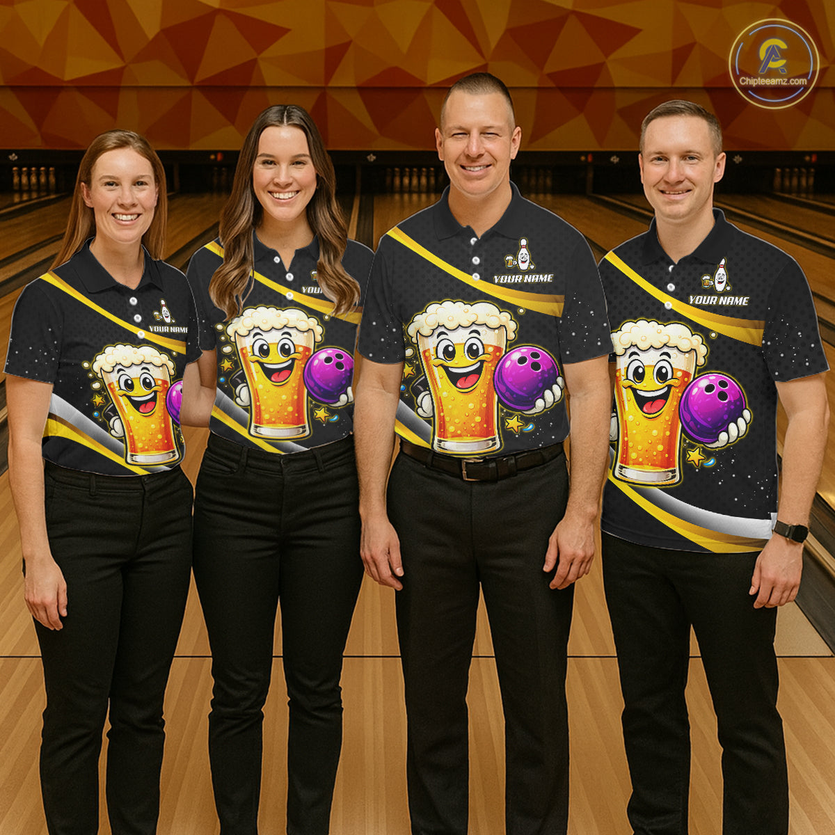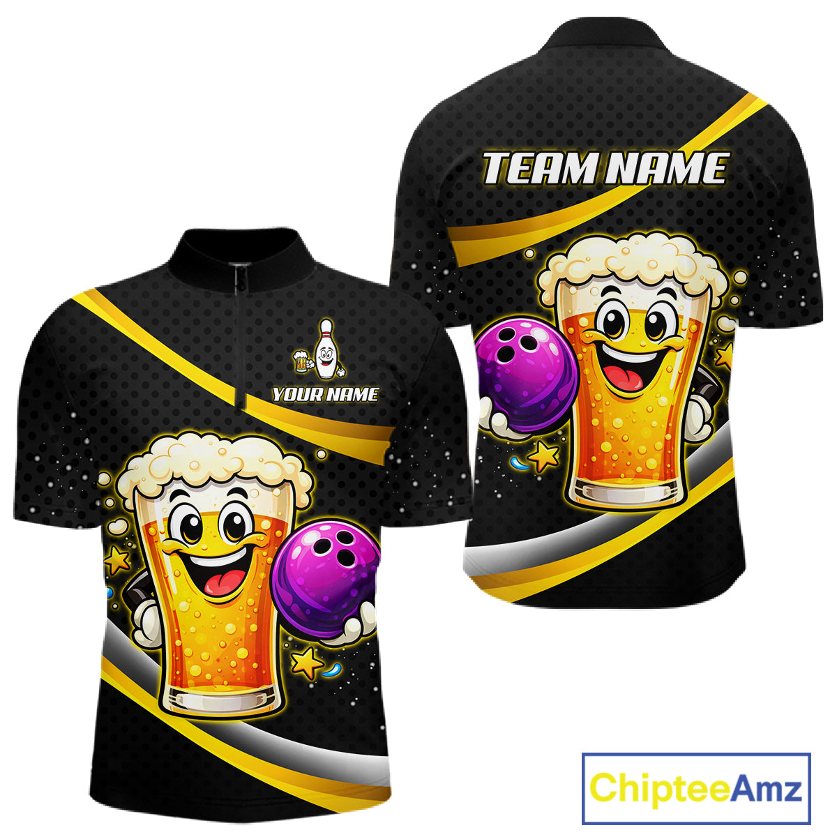 Custom Funny Beer Bowling Bowling Jersey for Men Bowling Team Shirts Polo & 1/4 Zip HNT190