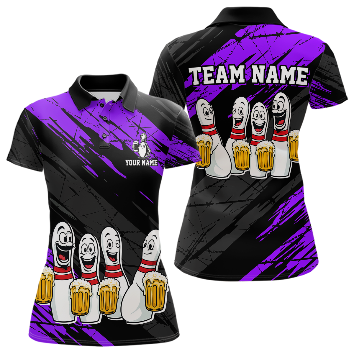 Custom Purple Funny Bowling Tournament Jersey for Women Bowling Team Shirts Polo & 1/4 Zip HNT178