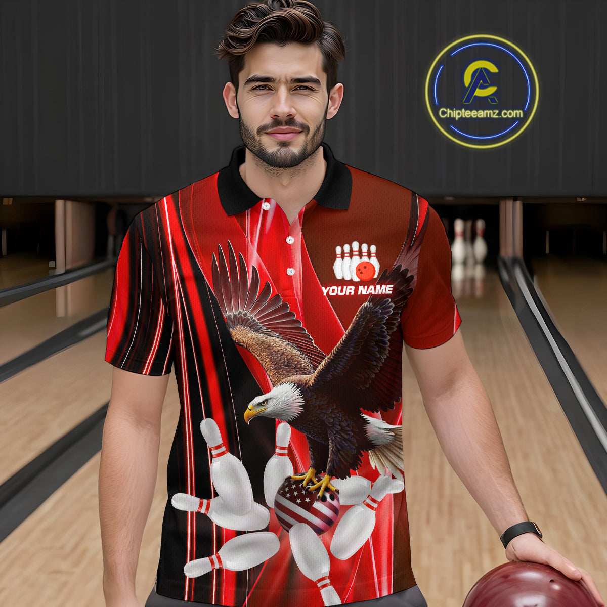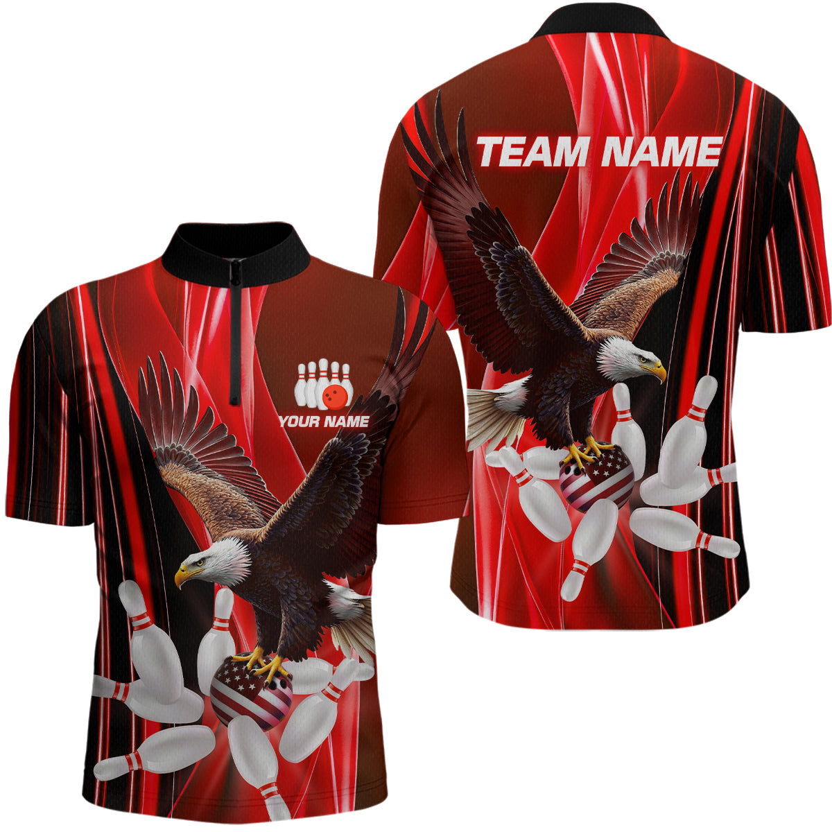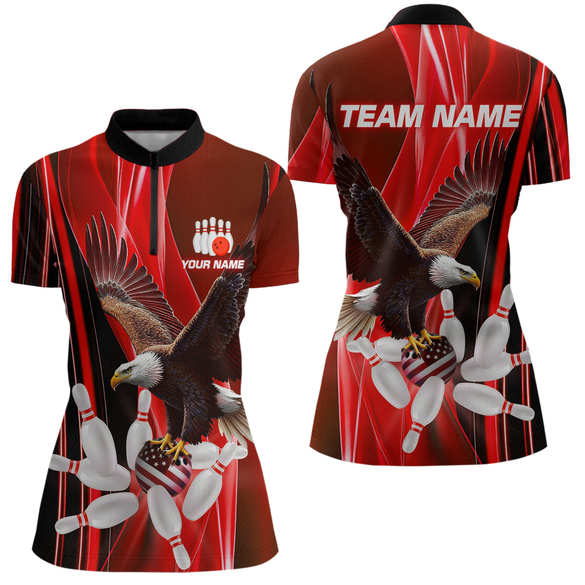 Custom Red Eagle Bowling Shirt for Men Women Team Bowling Polo Shirts & 1/4 Zip MBL95