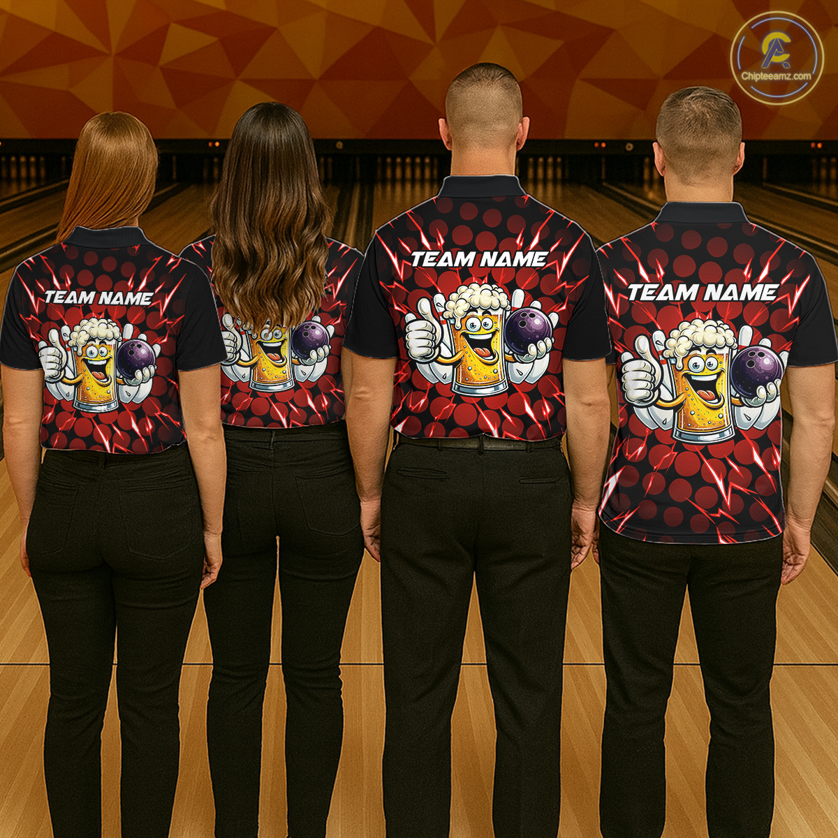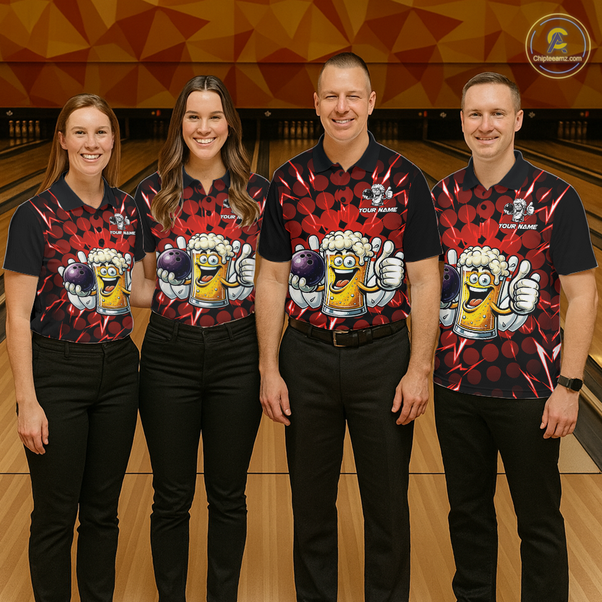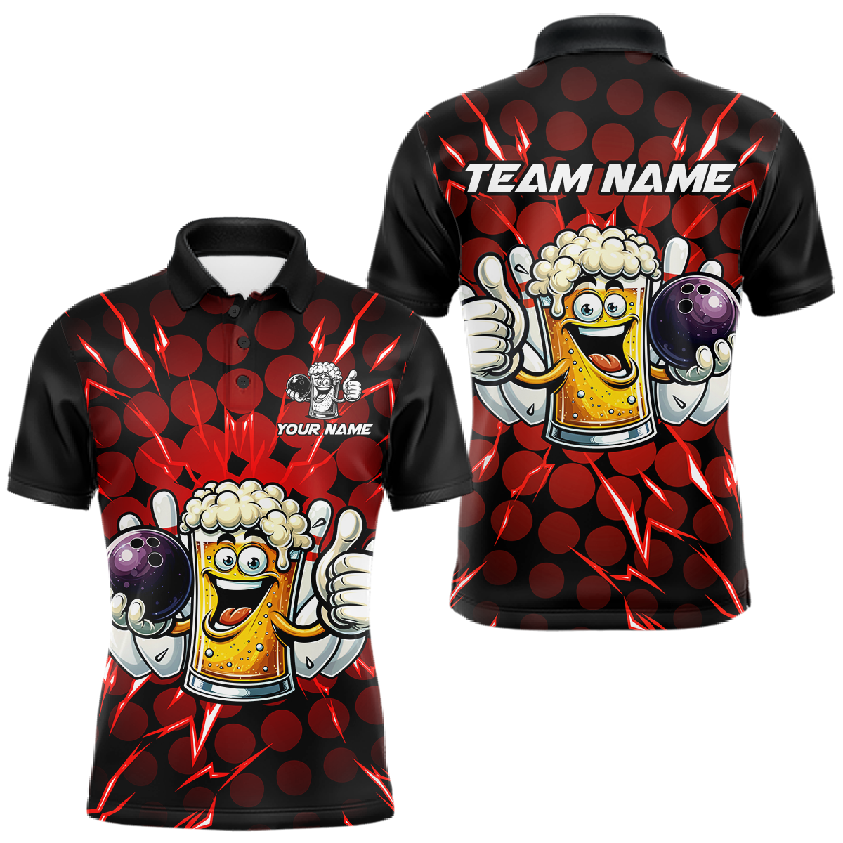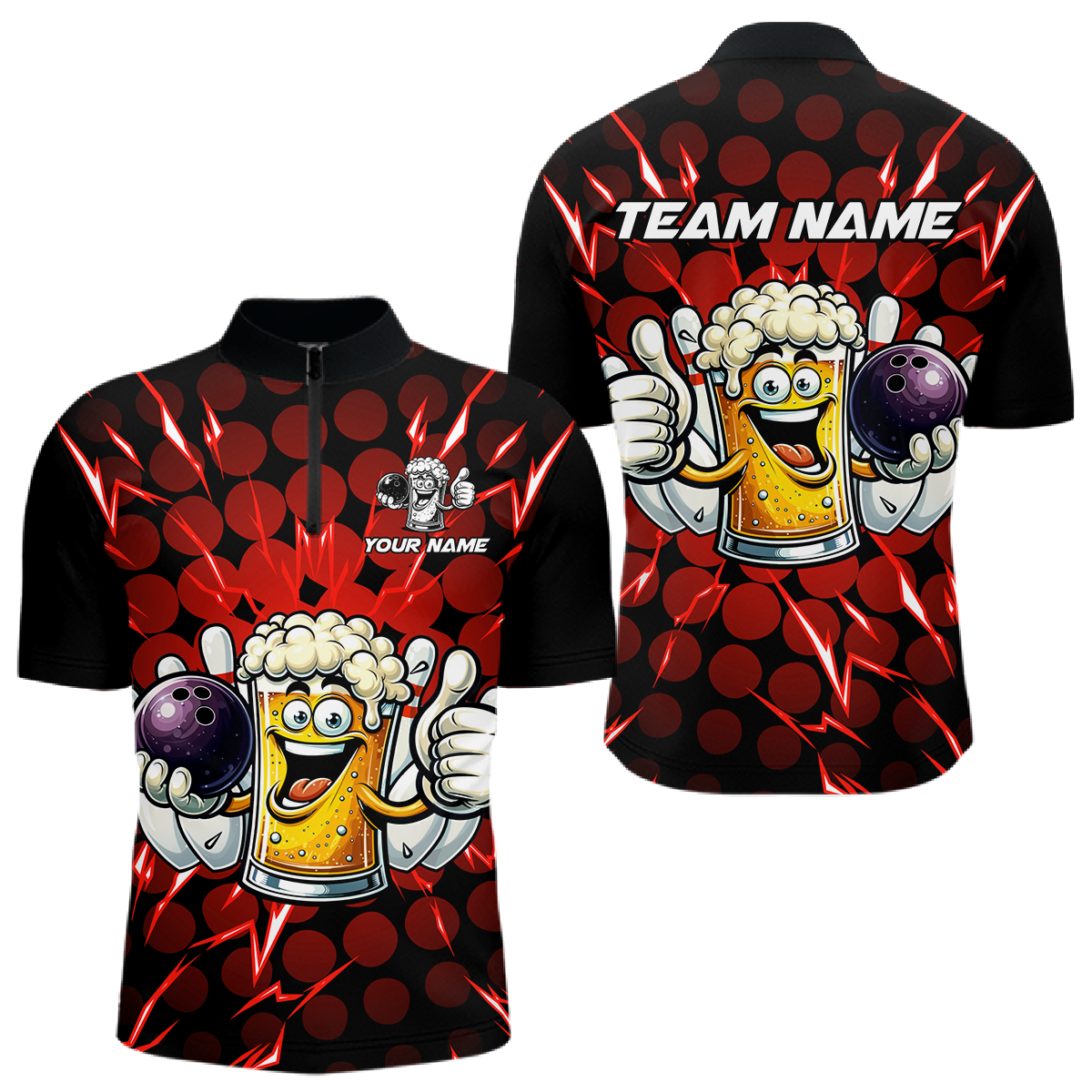 Custom Red Funny Beer Bowling Jersey for Men Bowling Team Shirts Polo & 1/4 Zip HNT187