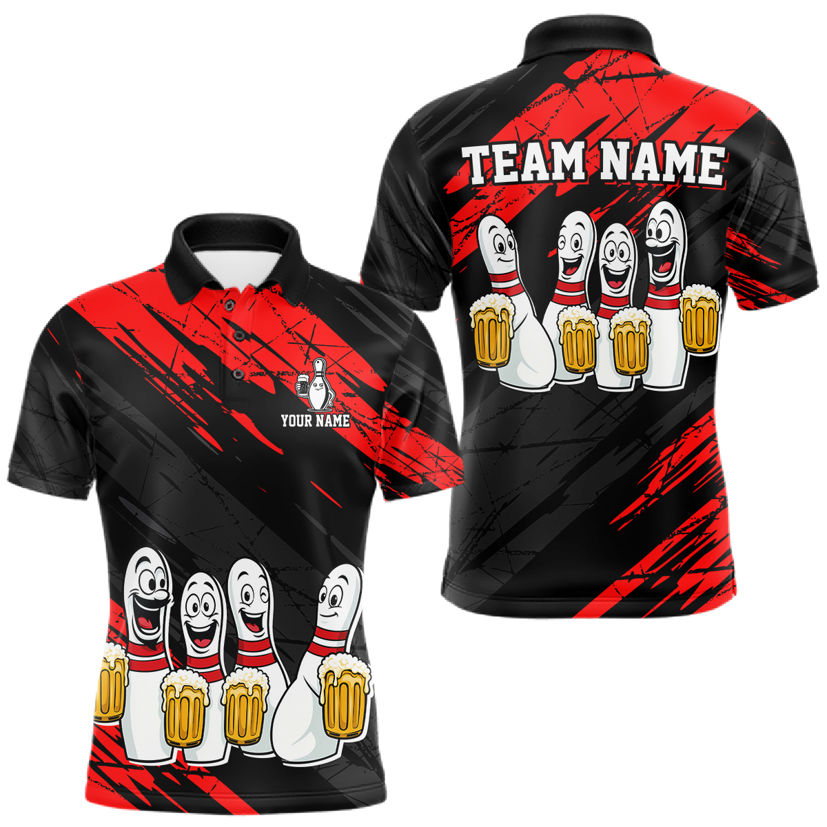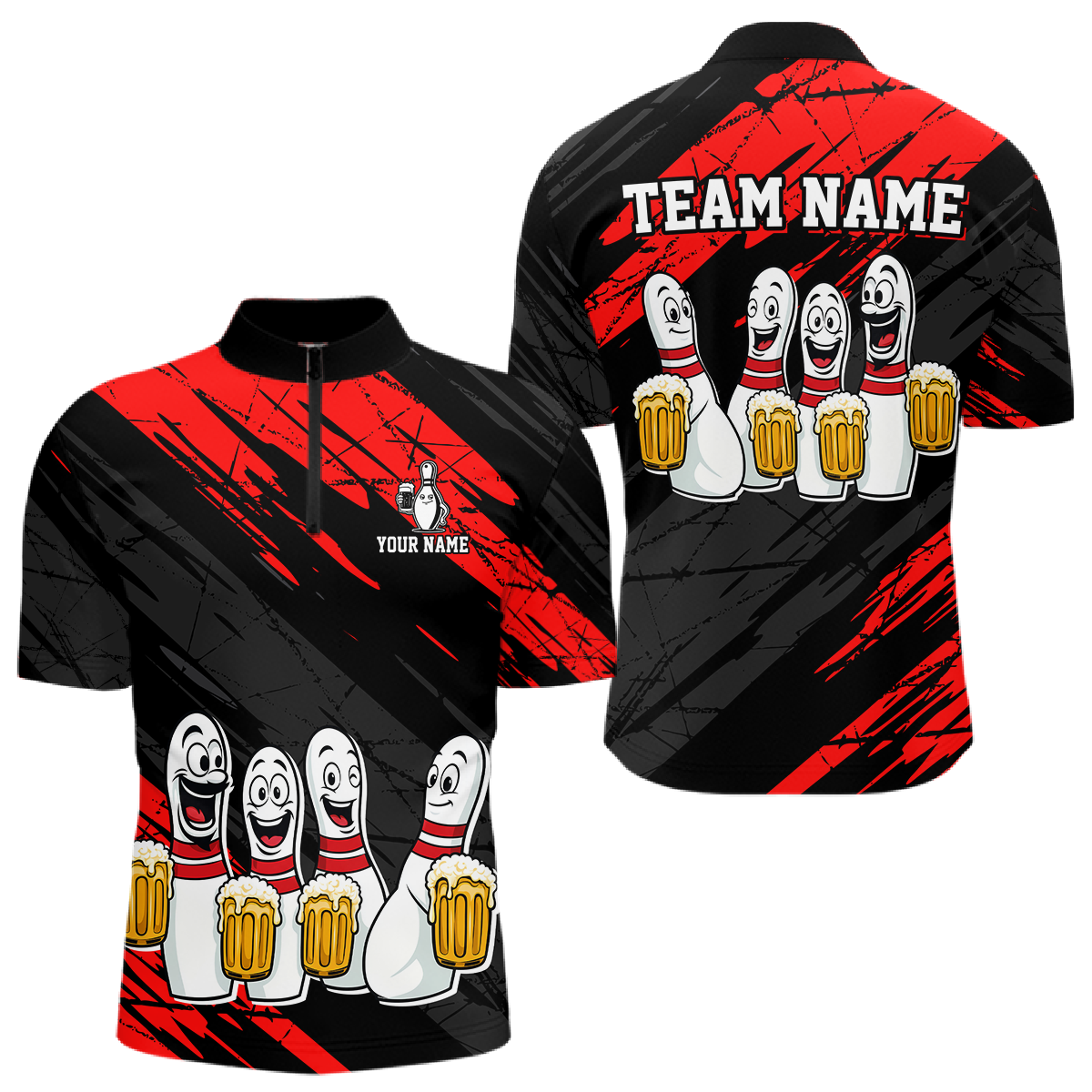 Custom Red Funny Bowling Tournament Jersey for Men Bowling Team Shirts Polo & 1/4 Zip HNT178