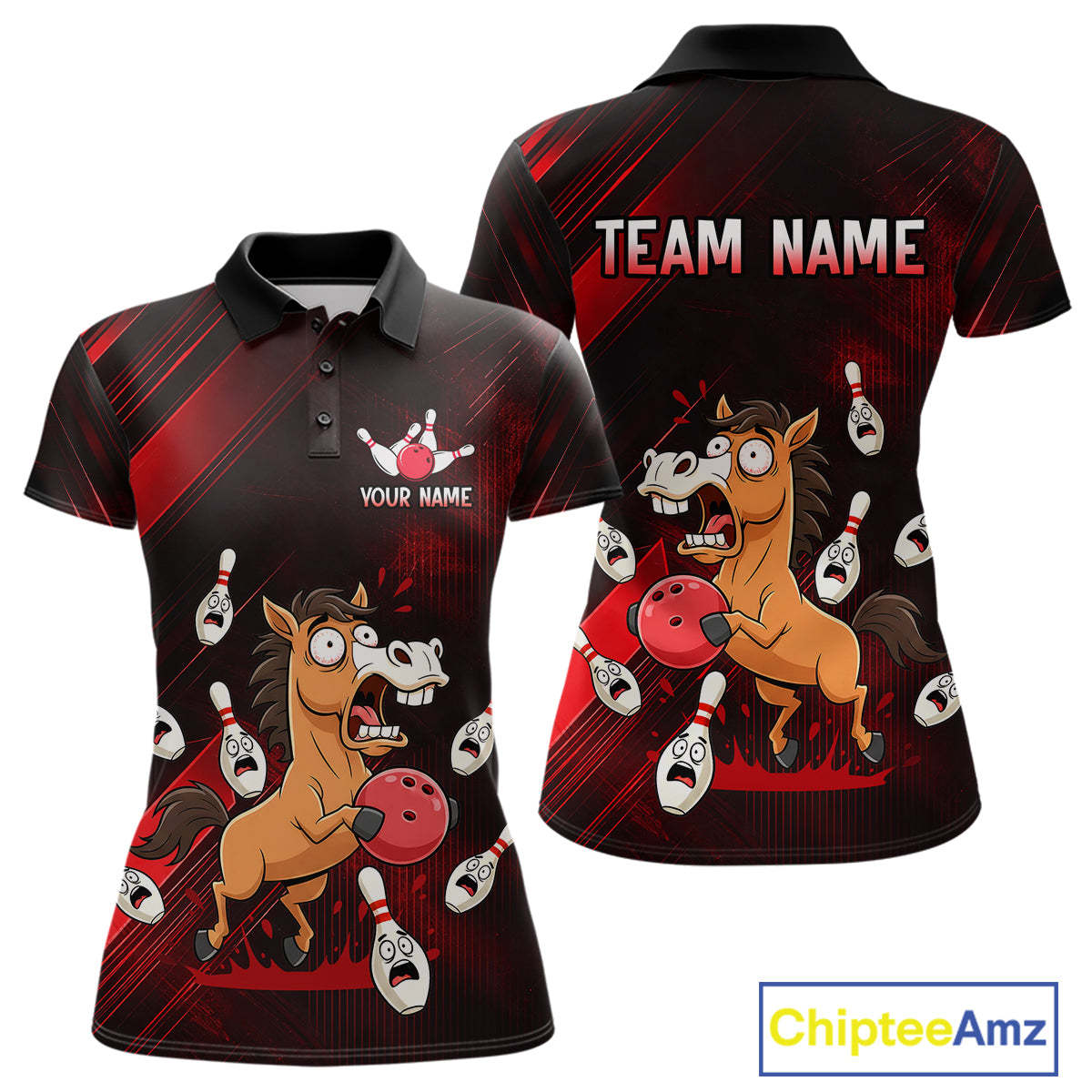 Custom Red Funny Horse Bowling Jersey for Women Bowling Team Shirts Bowling Tournament HNT184