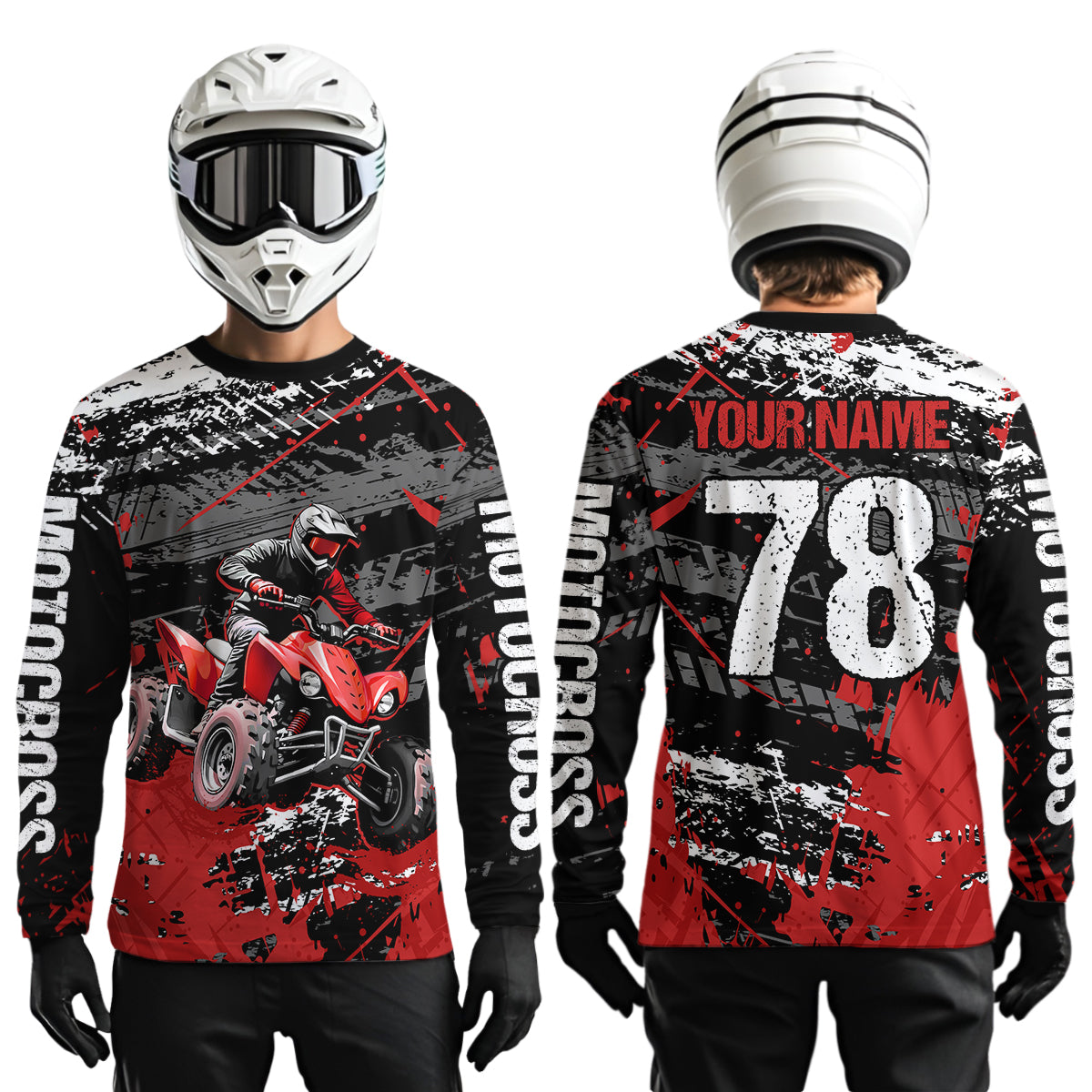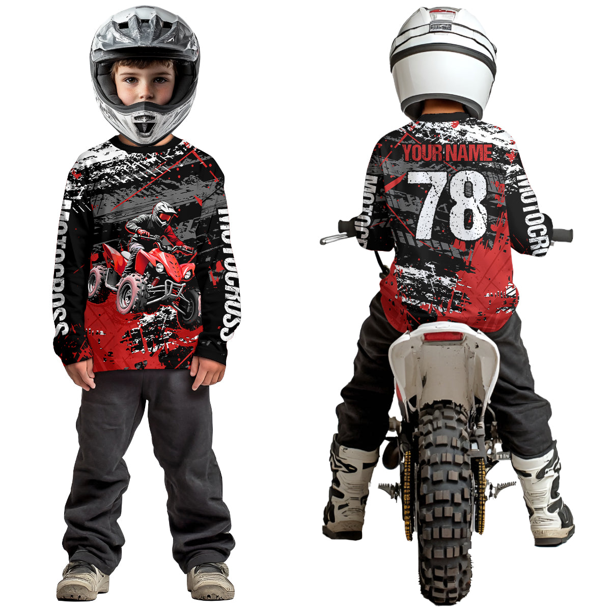 Custom Red Off-Road Quad Bike Shirt Youth ATV Motocross Shirts Kid Men Women UPF30+ DNT78