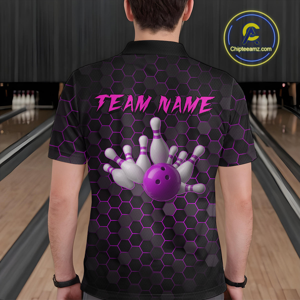Custom Strike Purple Bowling Men Bowling Shirt Polo & Quarter-Zip Bowling Team Jerseys HNT79