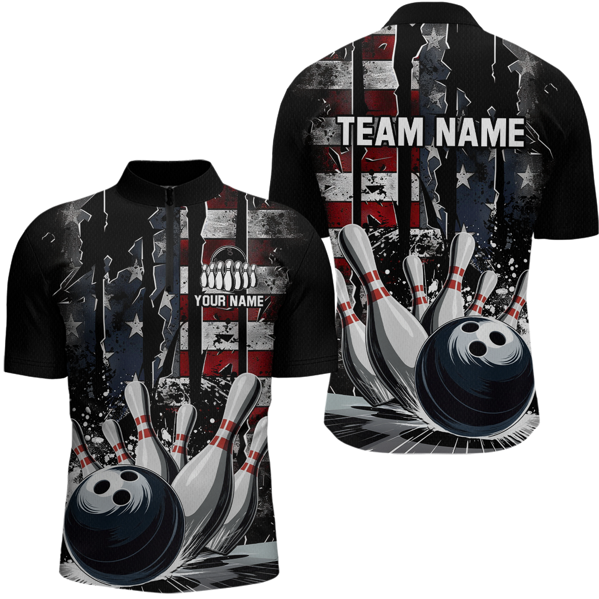 Custom Cracked US Flag Bowling Men Bowling Shirt Polo & Quarter-Zip Bowling Team Jerseys HNT86