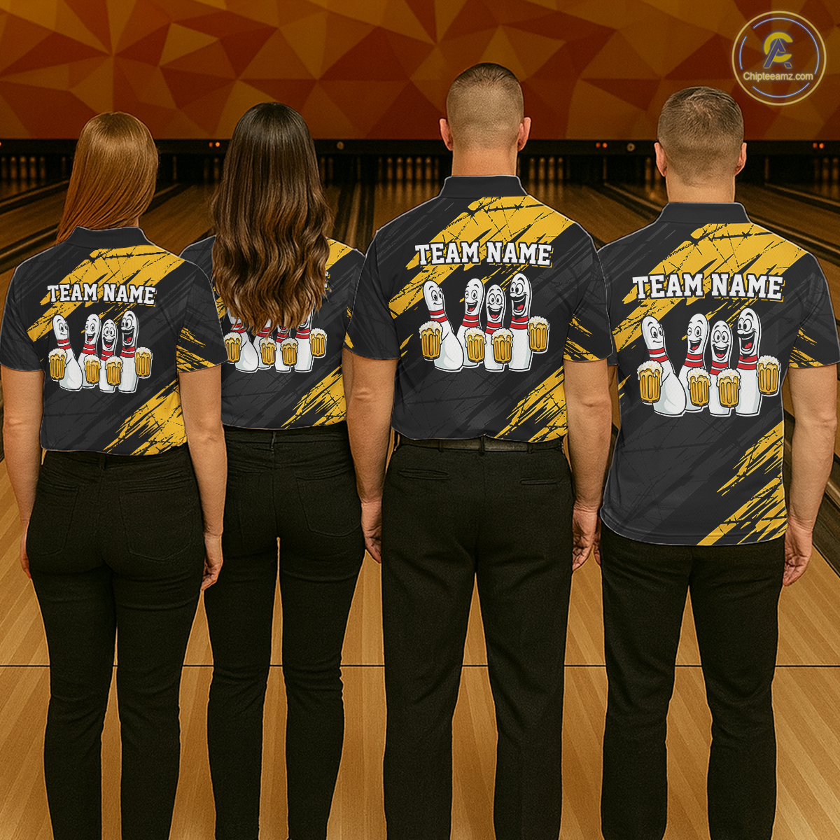 Custom Yellow Funny Bowling Tournament Jersey for Men Bowling Team Shirts Polo & 1/4 Zip HNT178