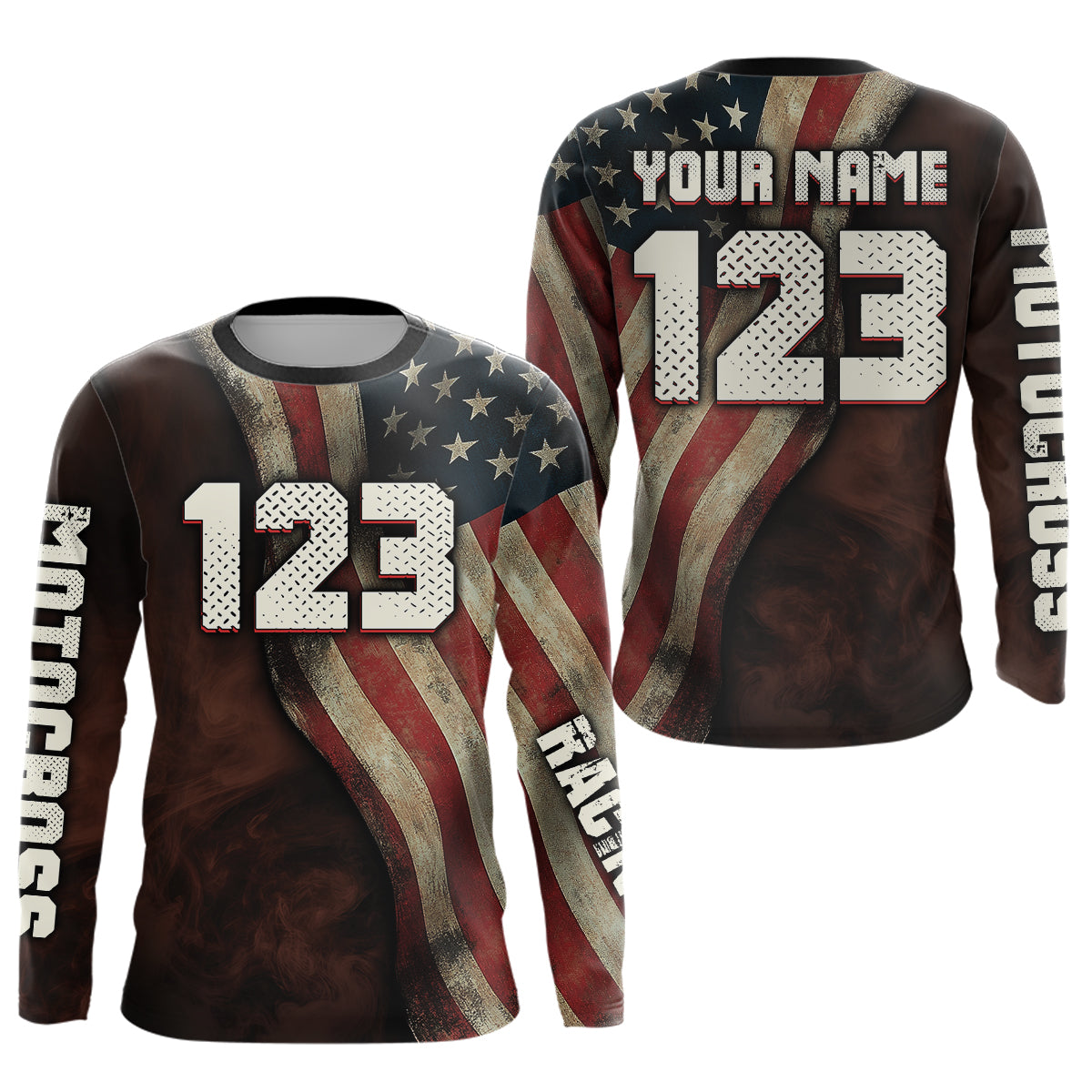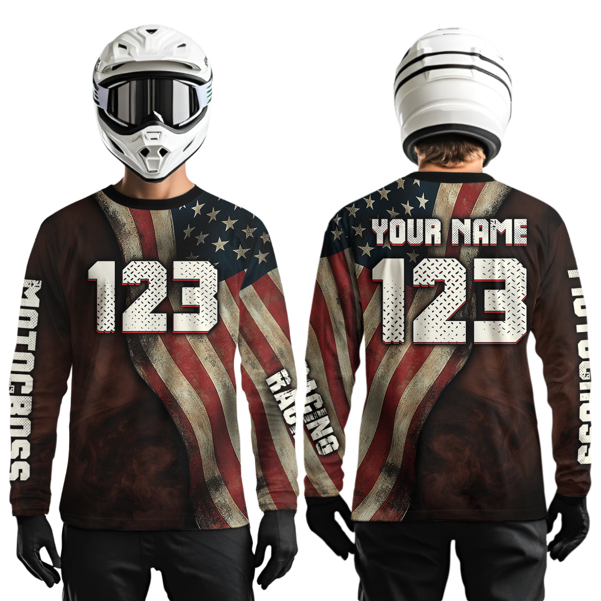 Custom Youth US Flag Dirt Bike Jersey Off-Road Shirt Motocross Jersey UPF30+ Kid Men Women DNT71