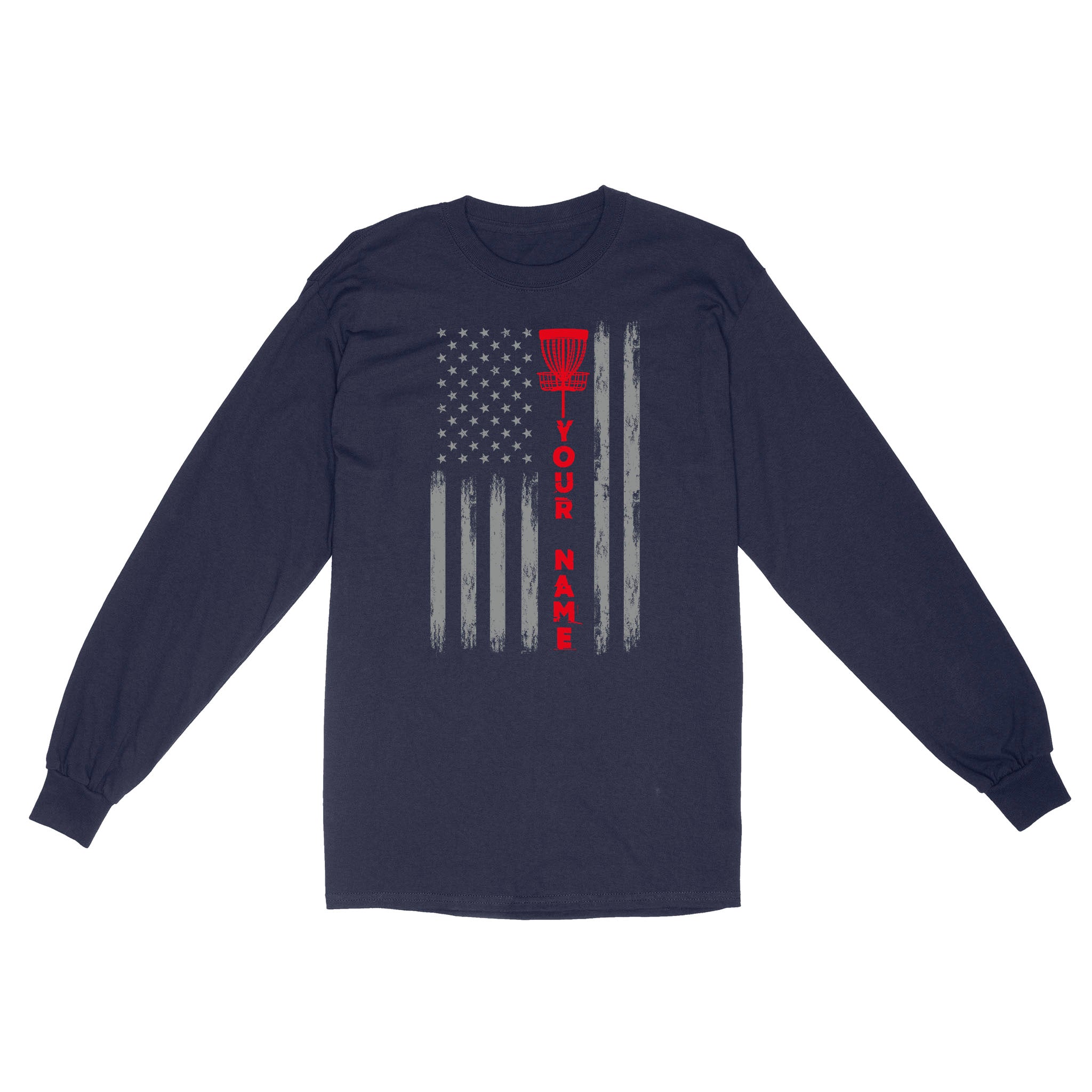 American Flag Disc Golf Long Sleeve custom name patriotic Disc Golf shirt D03 NQS9916