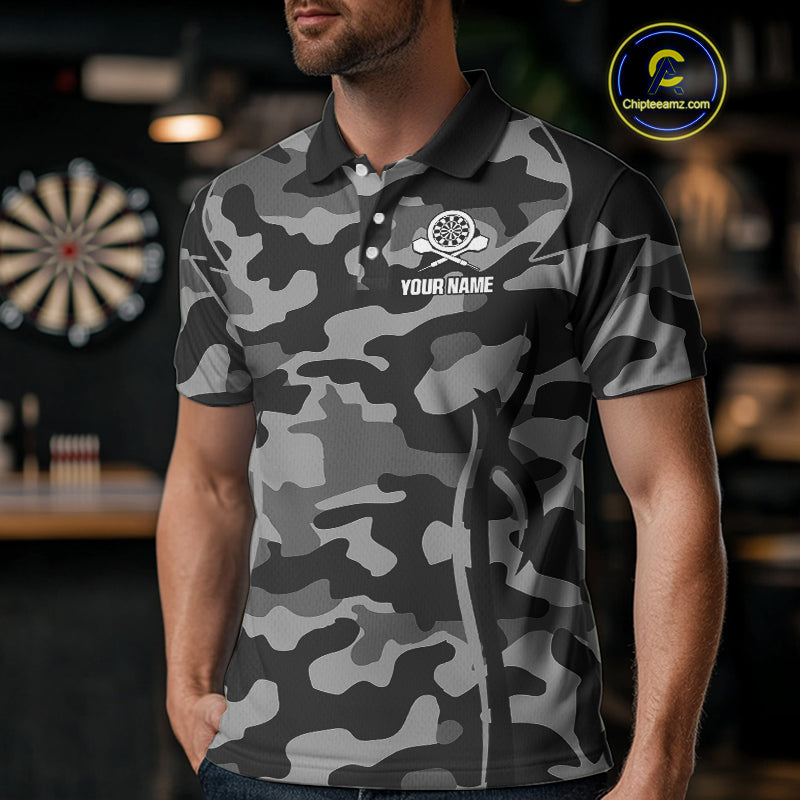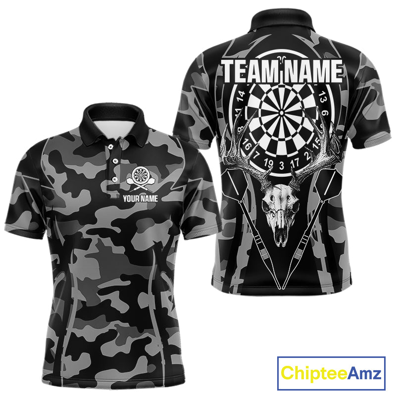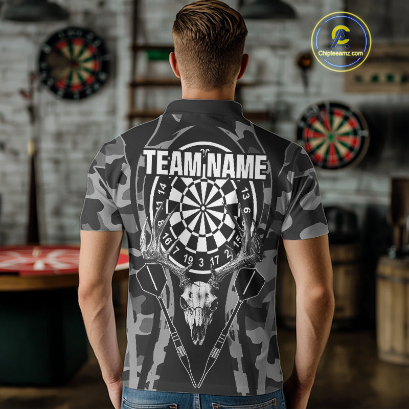 Deer Skull Darts Board Gray Camo Darts Polo, Quarter zip Shirts For Men Custom Team Darts Jersey NQS9934
