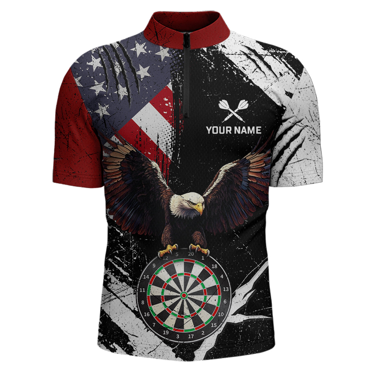 Custom US Flag Eagle Dart Shirt for Men Dartboard Shirt Dart Jerseys Gift for Team Polo &1/4 Zip NNT110