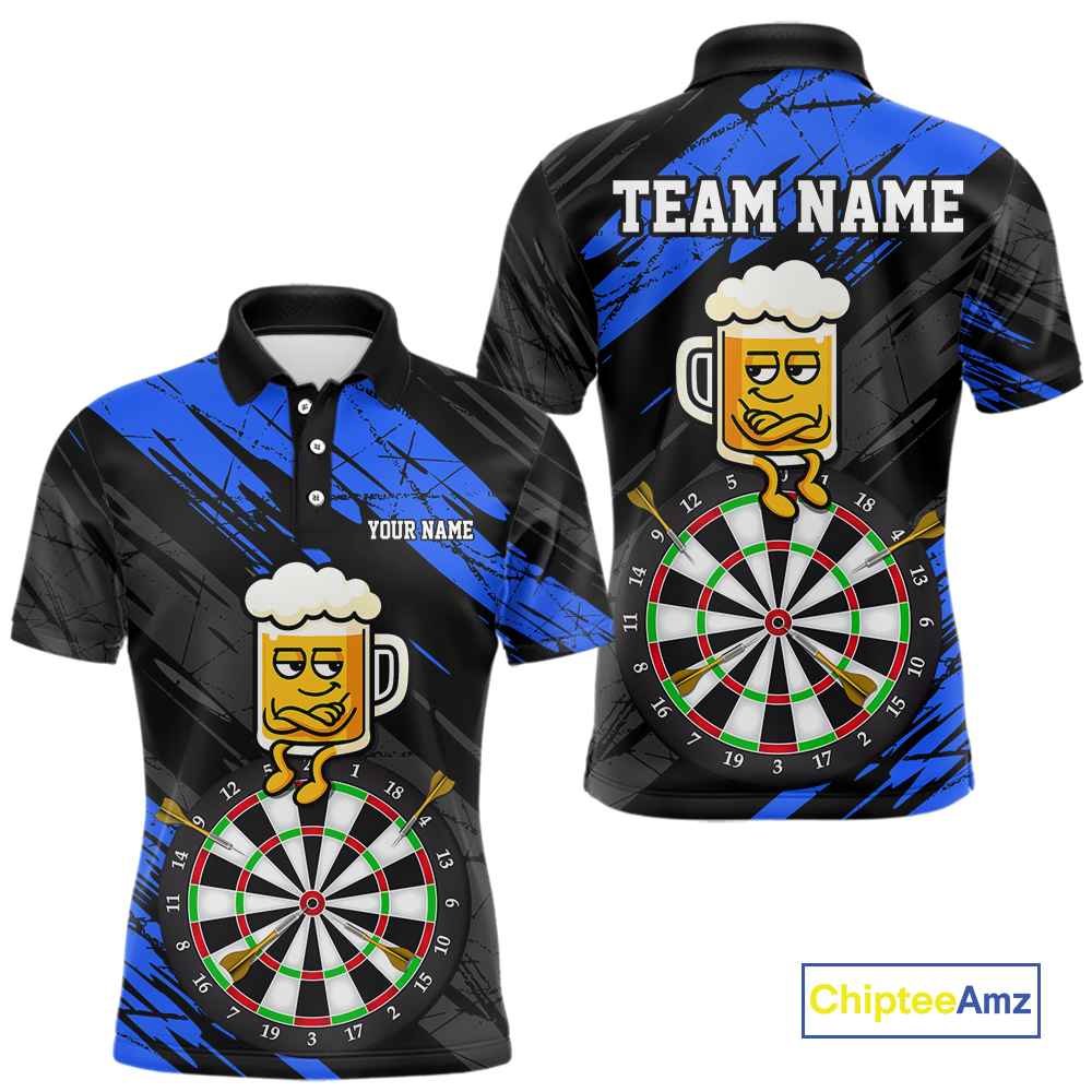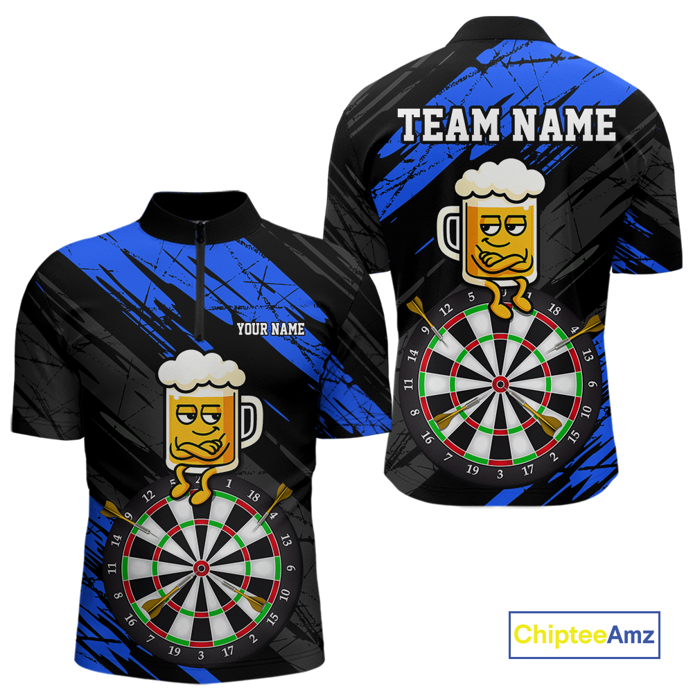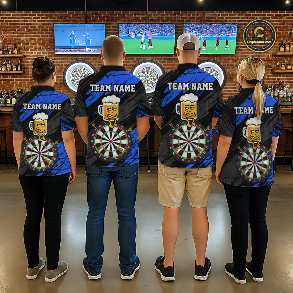 Custom Blue Funny Beer Darts Board Dart Shirts For Men Darts Team Jerseys Dart Tournament NNT120