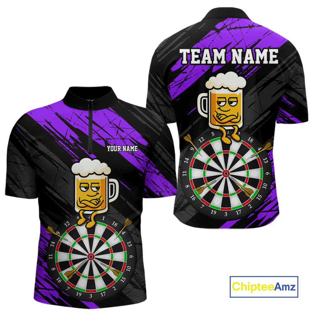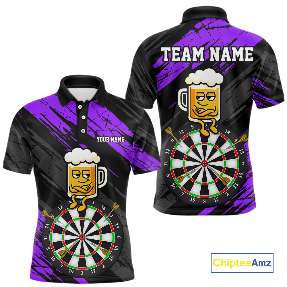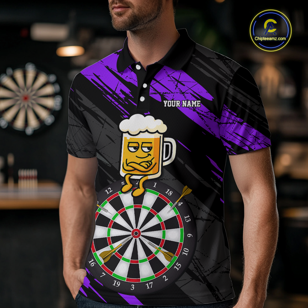 Custom Purple Funny Beer Darts Board Dart Shirts For Men Darts Team Jerseys Dart Tournament NNT120
