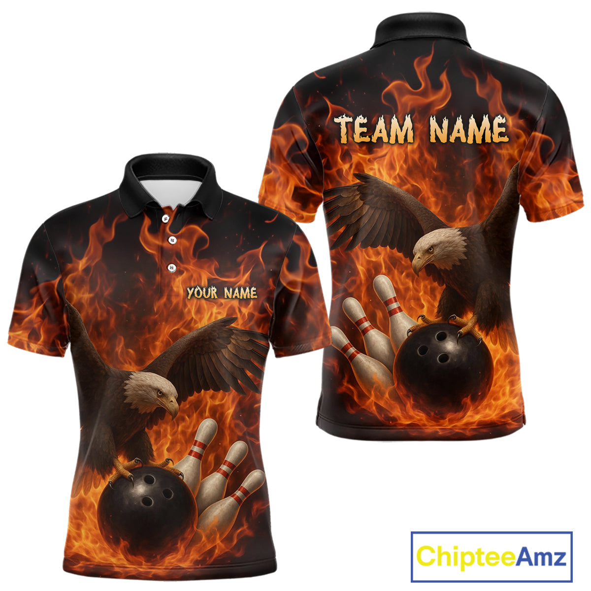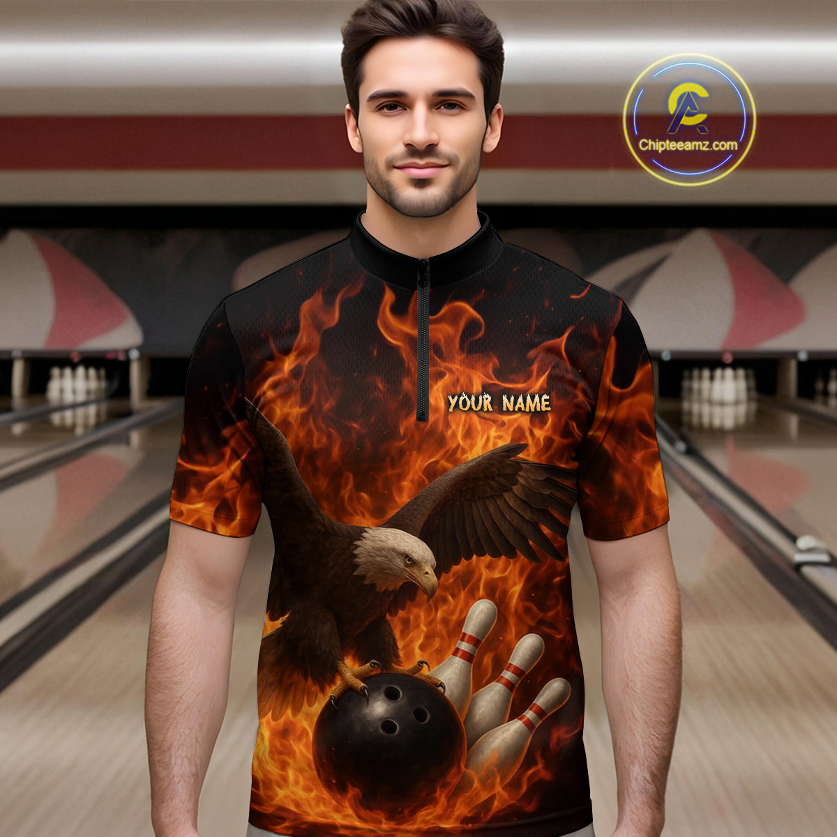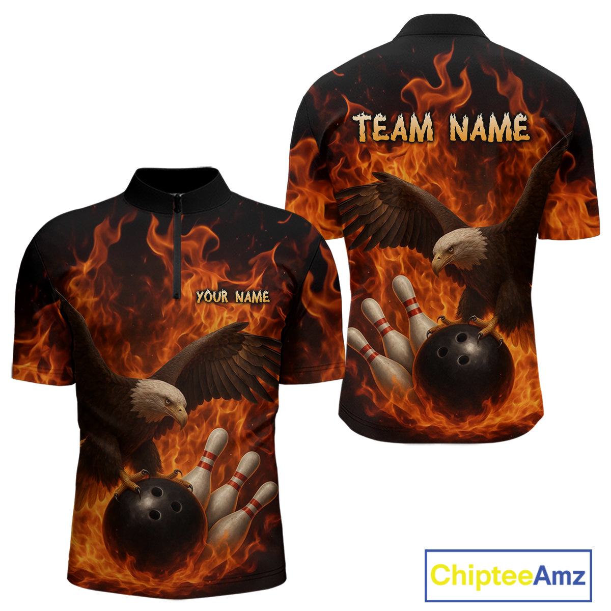 Flame Eagle Bowling Polo, Quarter Zip Shirts For Men Custom Eagle Bowling Team Jerseys NQS9972