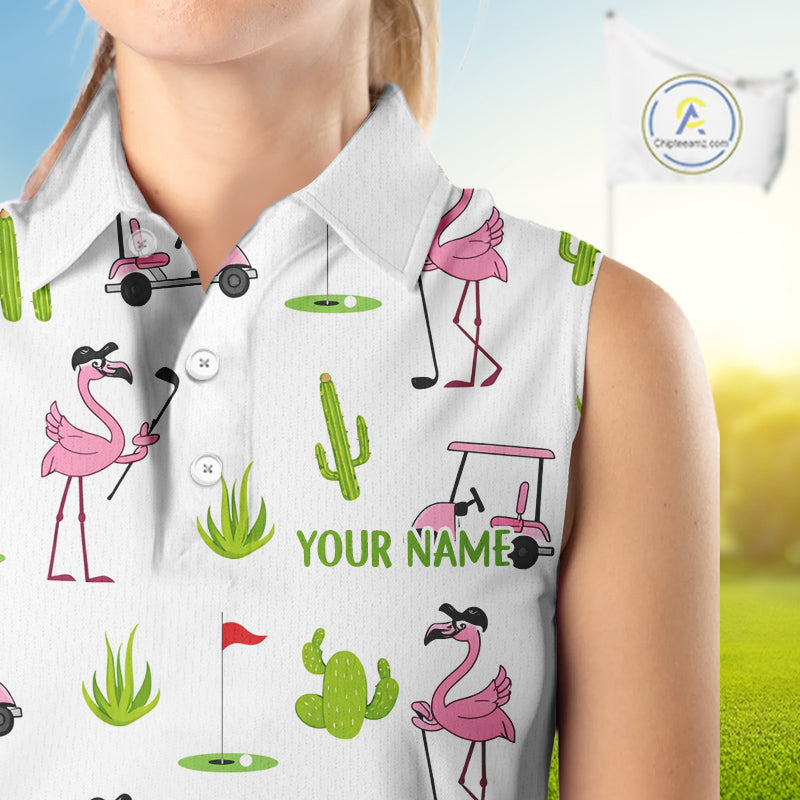 Flamingo Cactus Desert Pattern Womens Sleeveless Golf Polo Shirt Custom Cactus Golf Shirt NHN0150