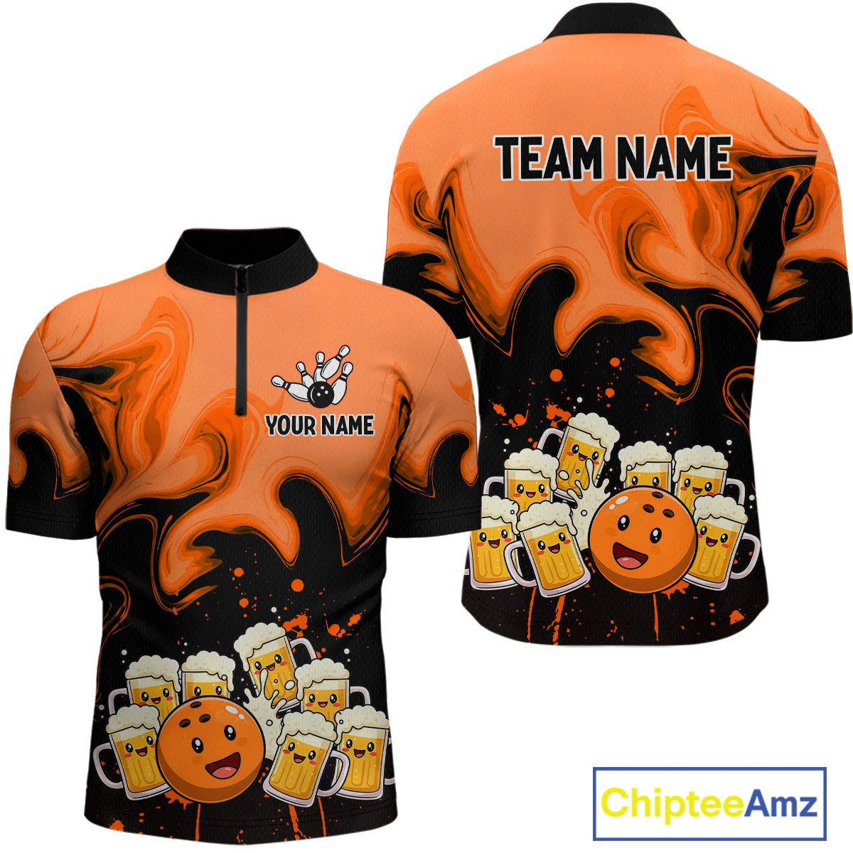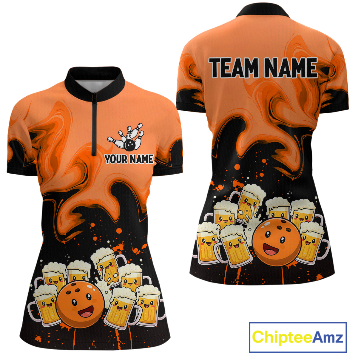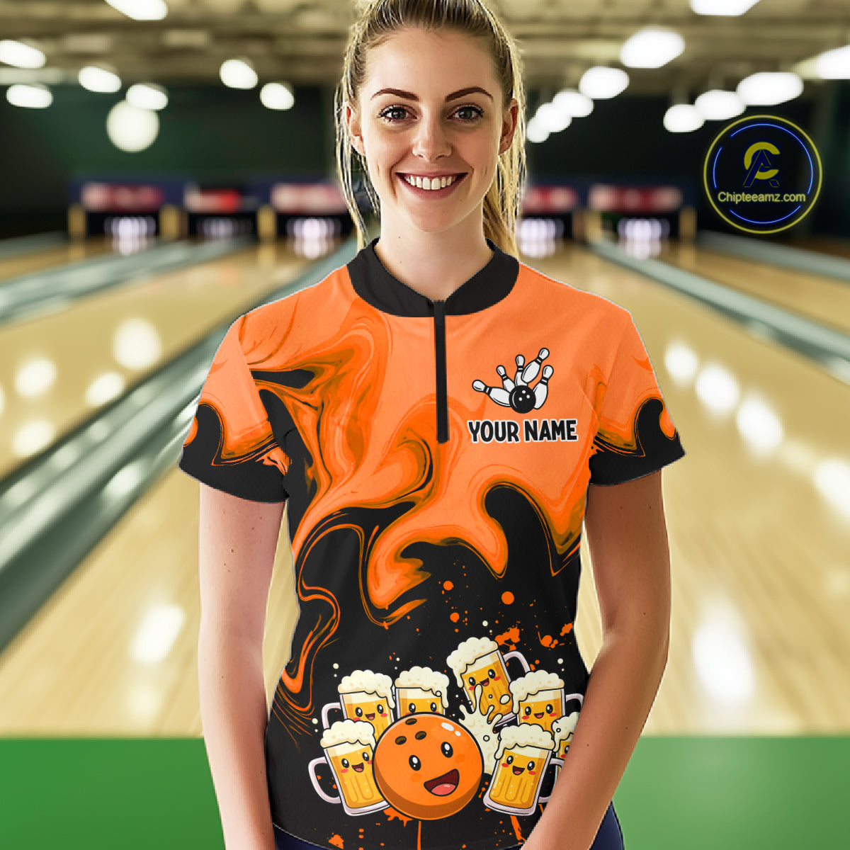 Funny Beer Bowling Shirts Orange for Women Men Bowling Polo&1/4 Zip Bowling League MBL252