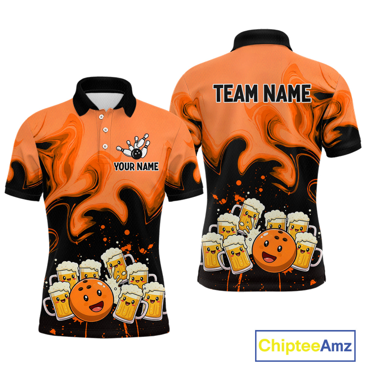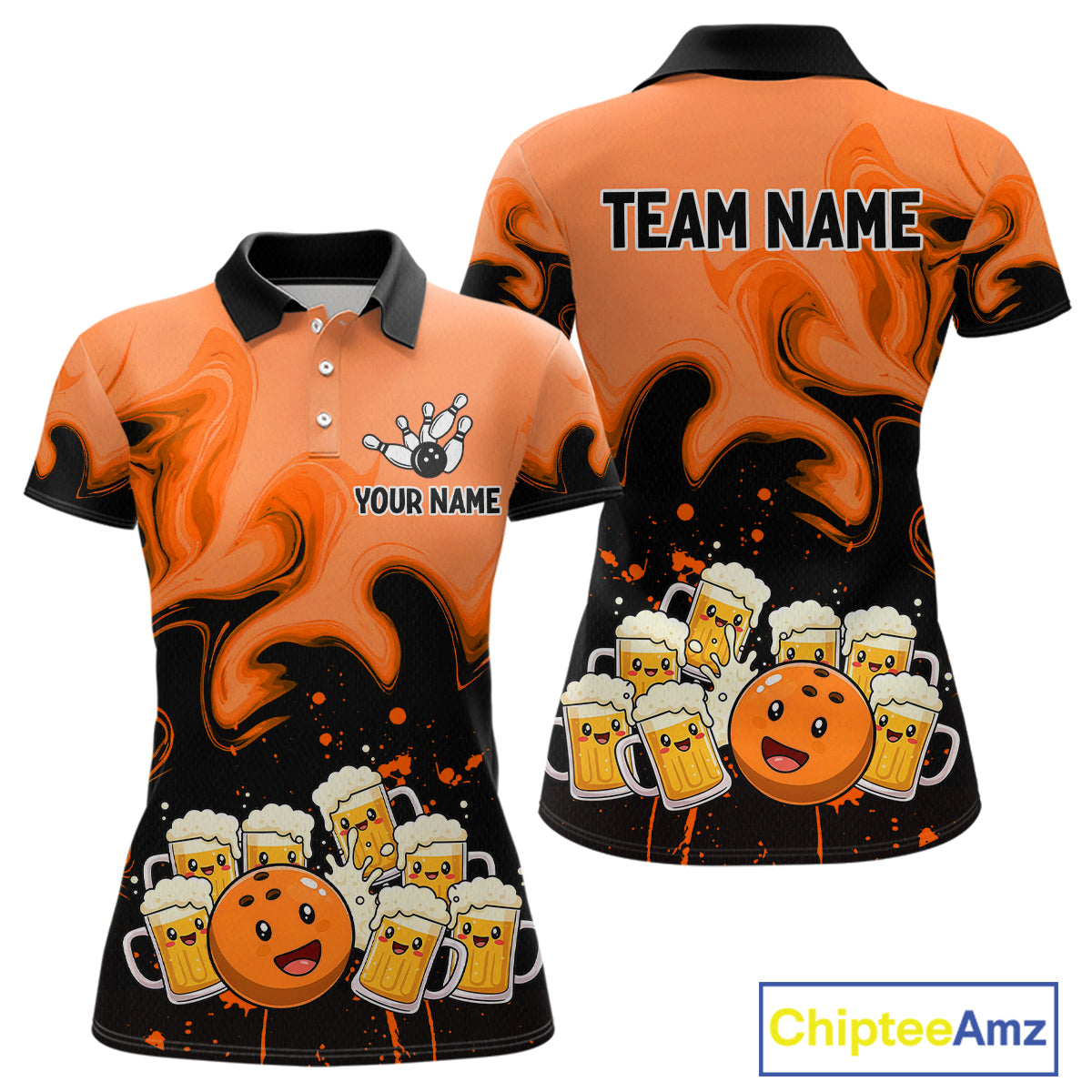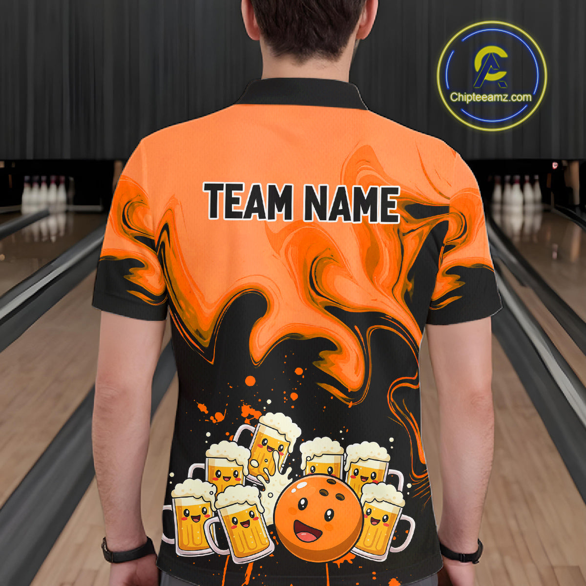 Funny Beer Bowling Shirts Orange for Women Men Bowling Polo&1/4 Zip Bowling League MBL252