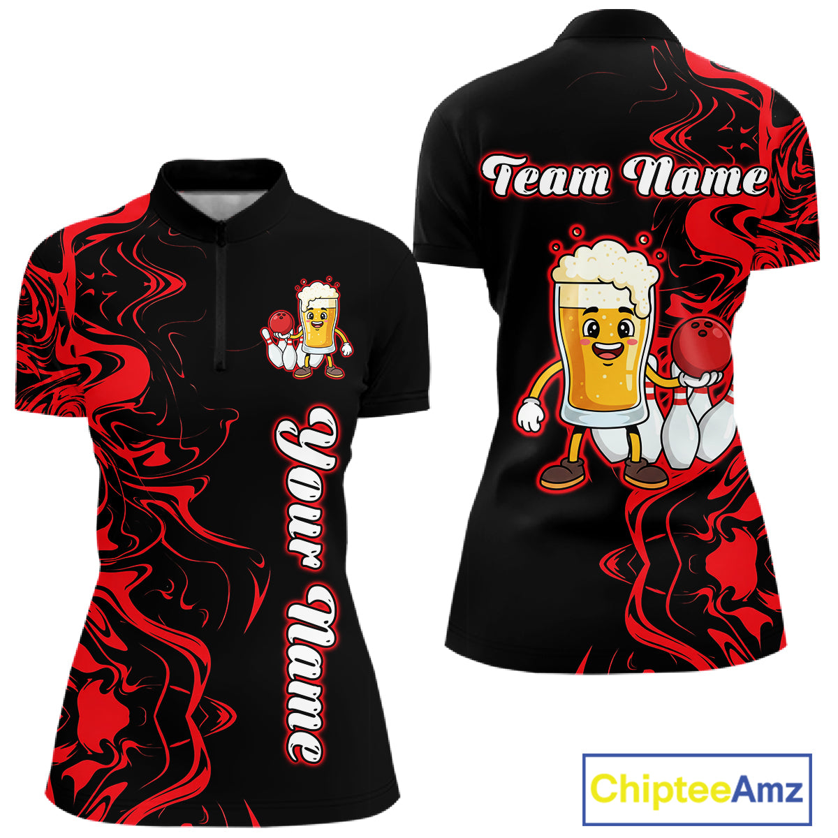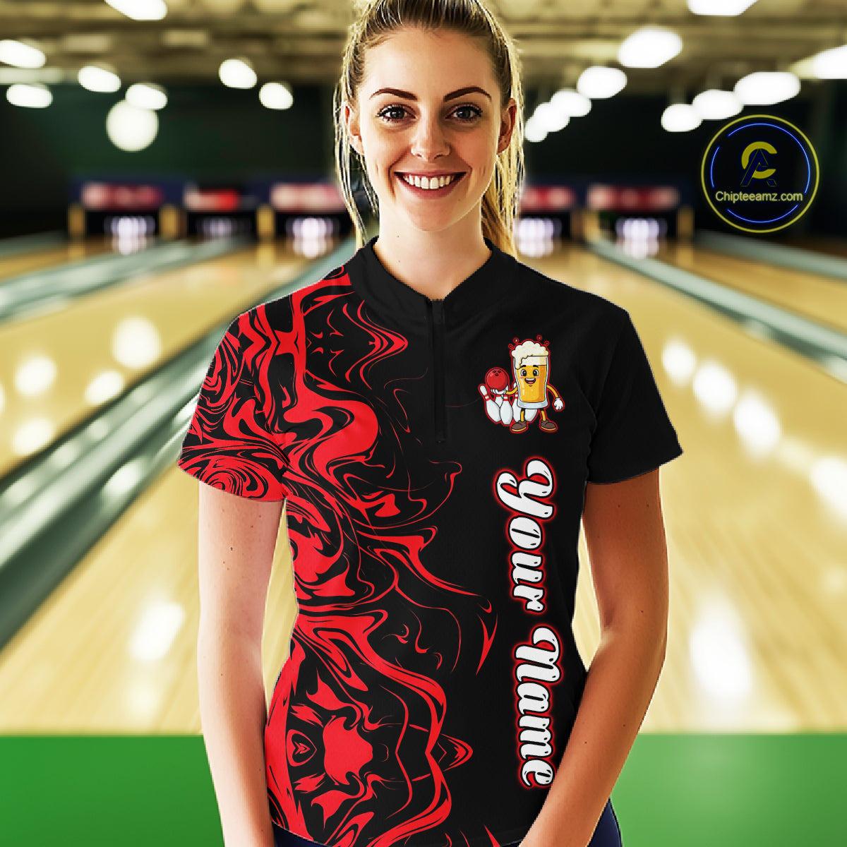 Funny Beer Bowling Shirts Team Women Men Custom Red Bowling Jersey for Bowler MBL250