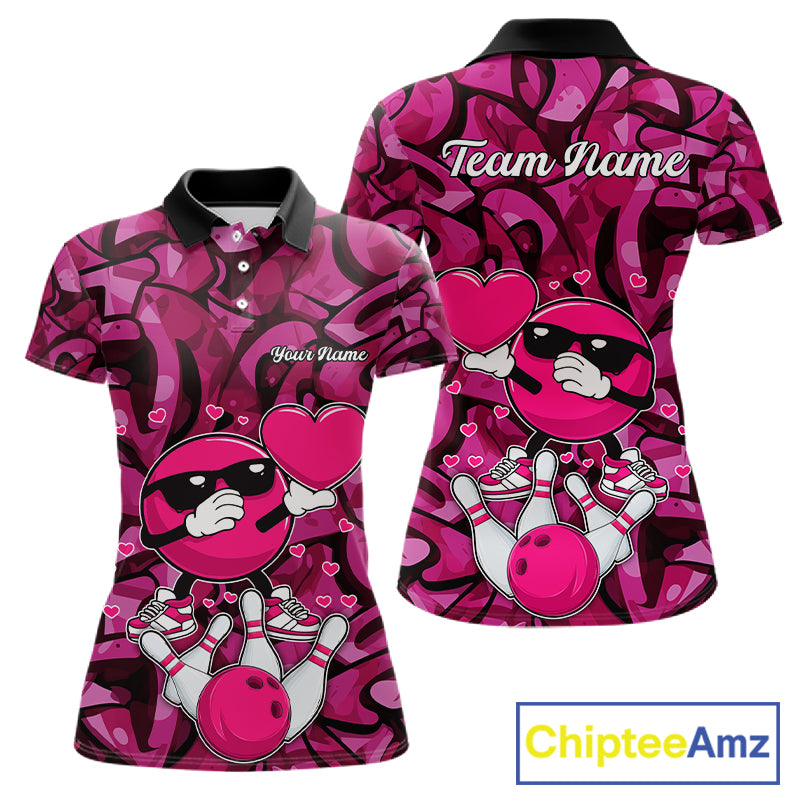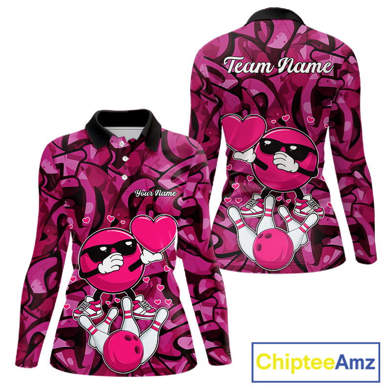 Funny Bowling heart pink graffiti pattern Valentine Women Bowling Shirt Custom Couple Bowling Outfits NQS11322