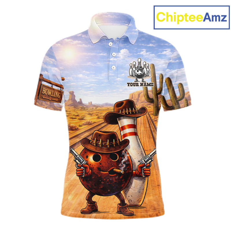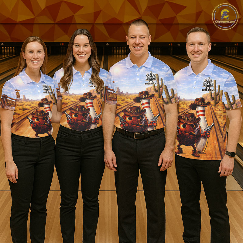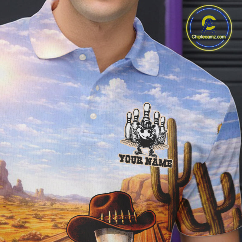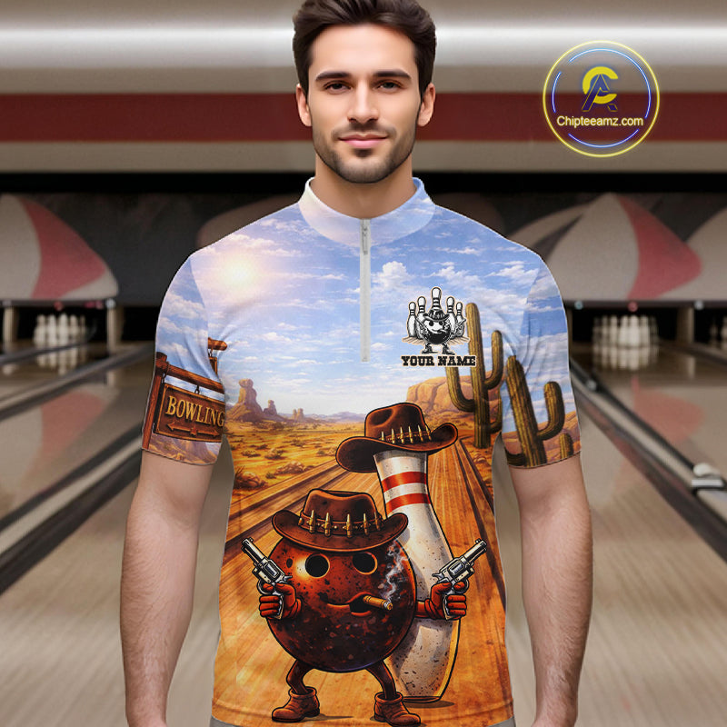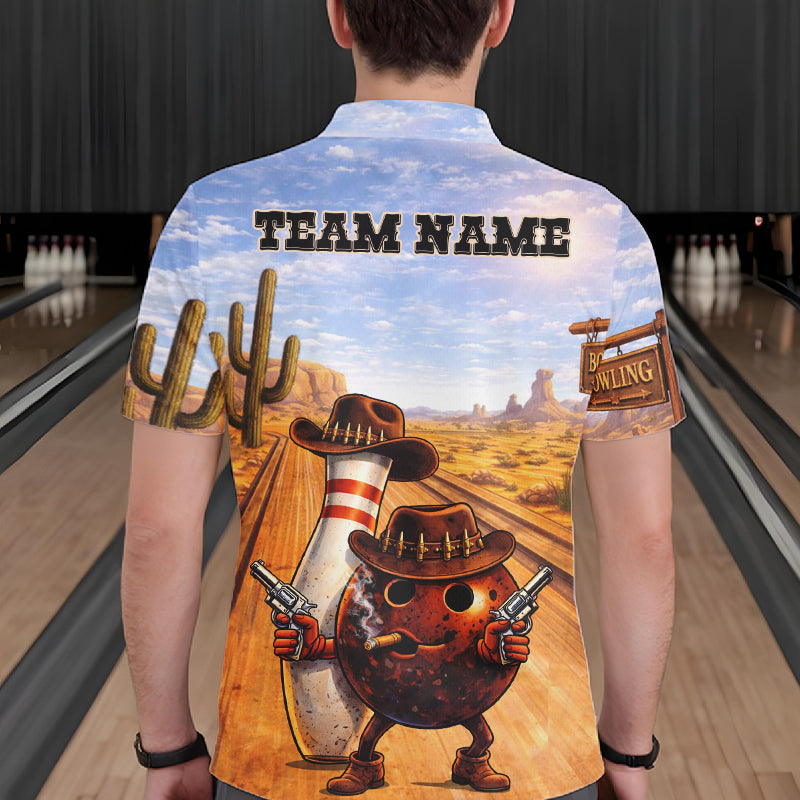 Funny desert Bowling Cowboy gun Bowling Polo, 1/4 zip shirts Custom bowling team jerseys NQS11434
