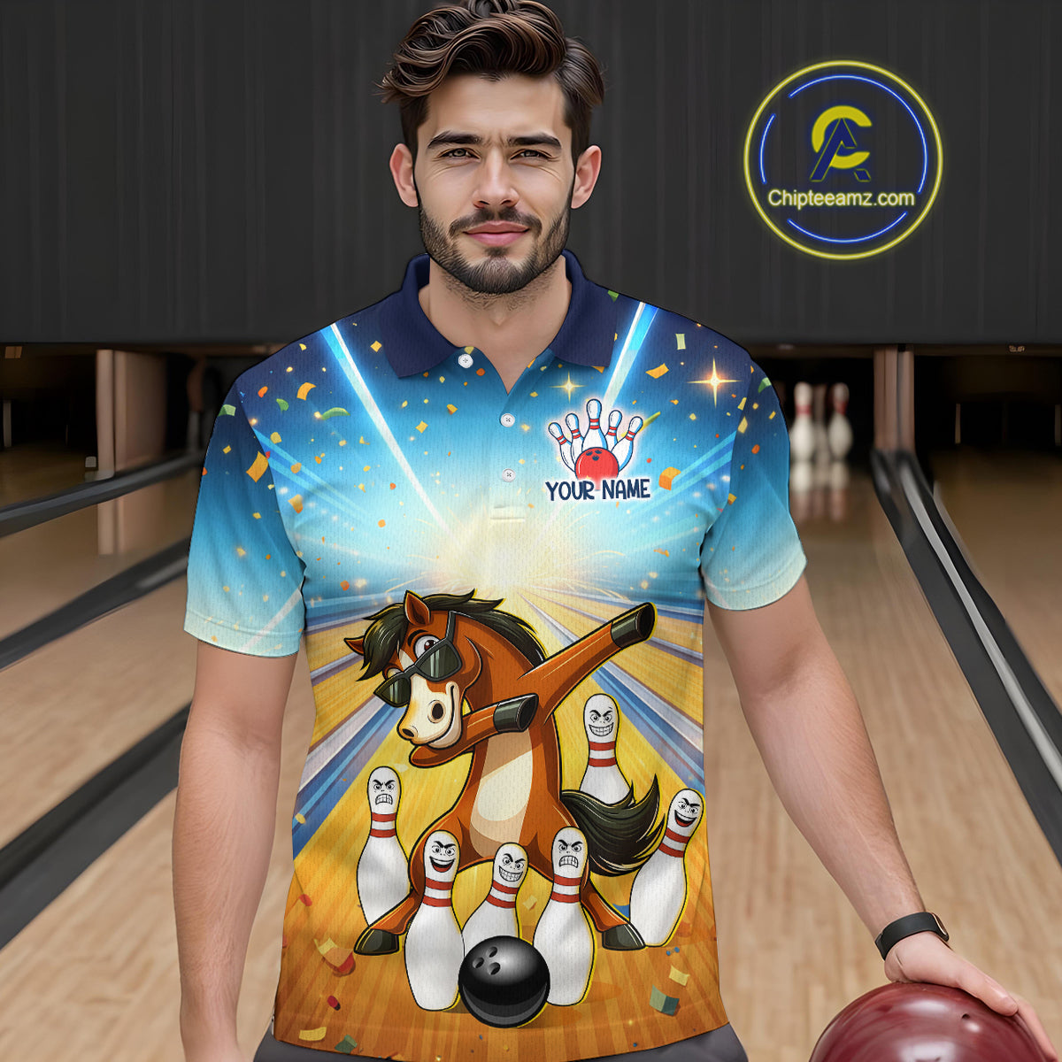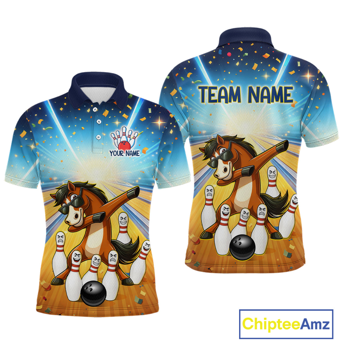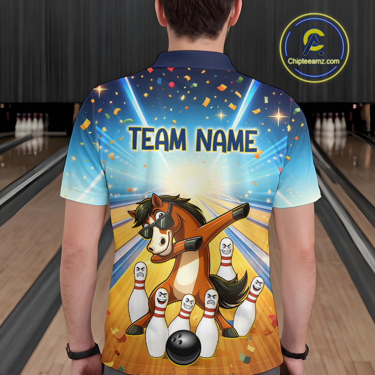 Funny Horse Bowling Jersey for Men Custom Bowling Team Shirts Bowling League Polo & 1/4 Zip HNT182