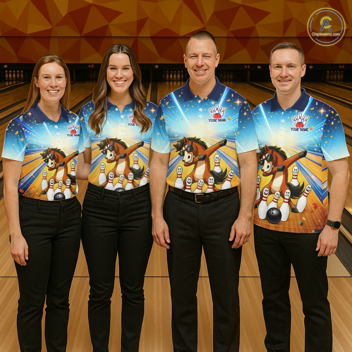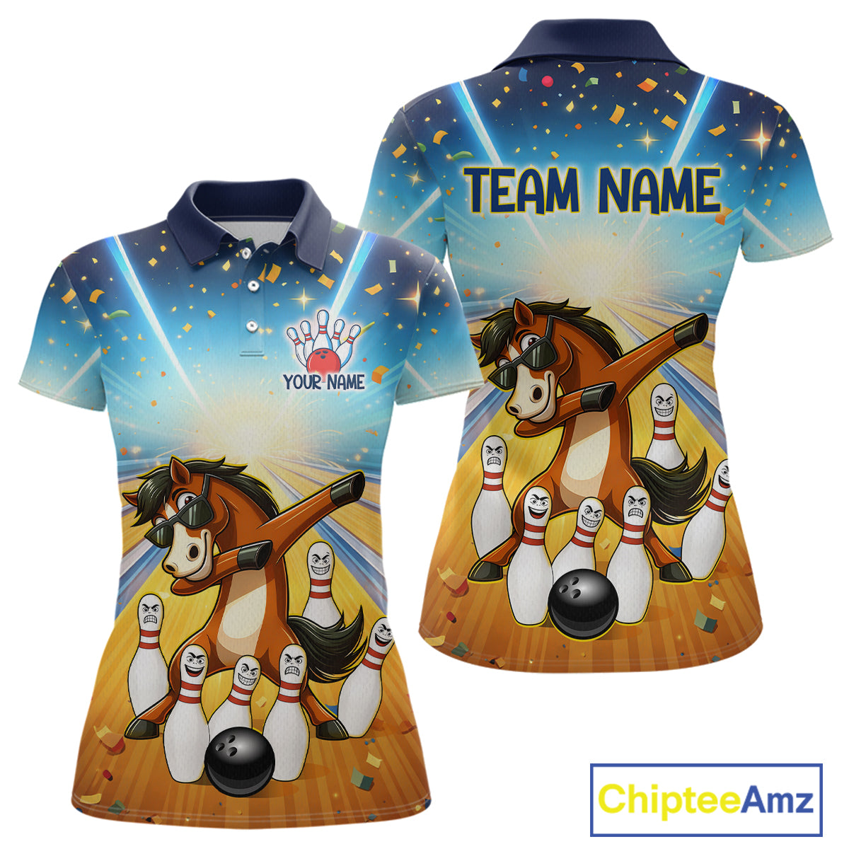 Funny Horse Bowling Jersey for Women Custom Bowling Team Shirts Bowling League Polo & 1/4 Zip HNT182